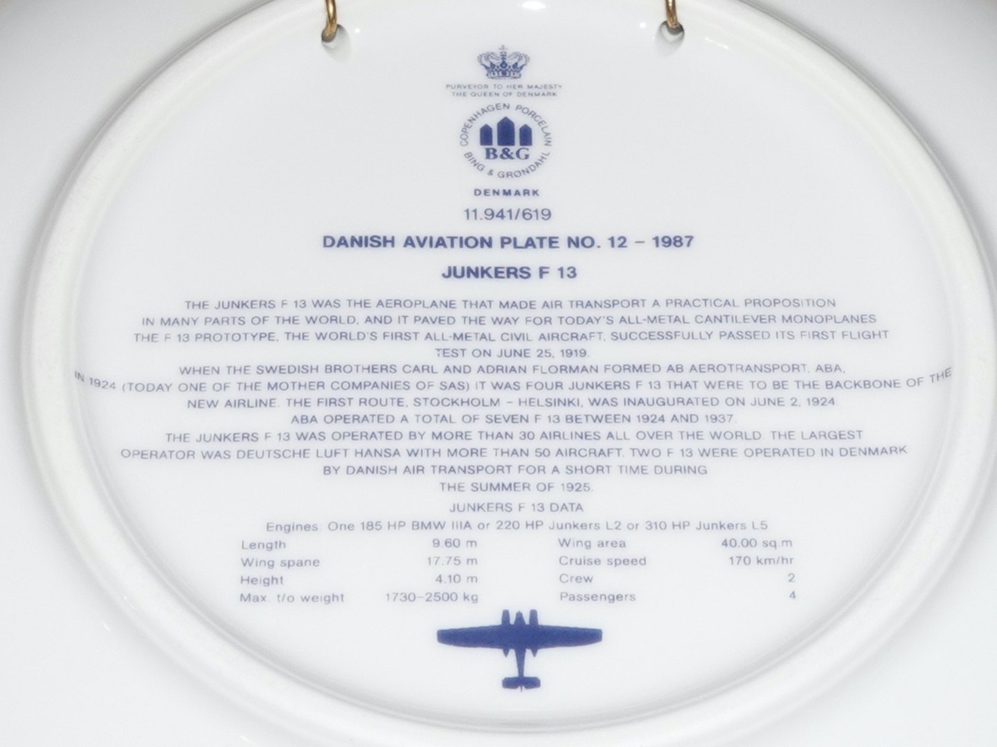 Bing & Grøndahl flyplatte Nummer 12, Junkers Tomten F13