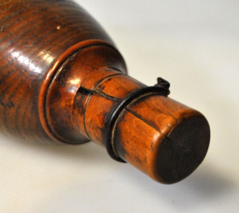 Hagl beholder, 19. årh. Danmark. Poleret bøg med skruelåg i frugttræ. L.: 18 cm.