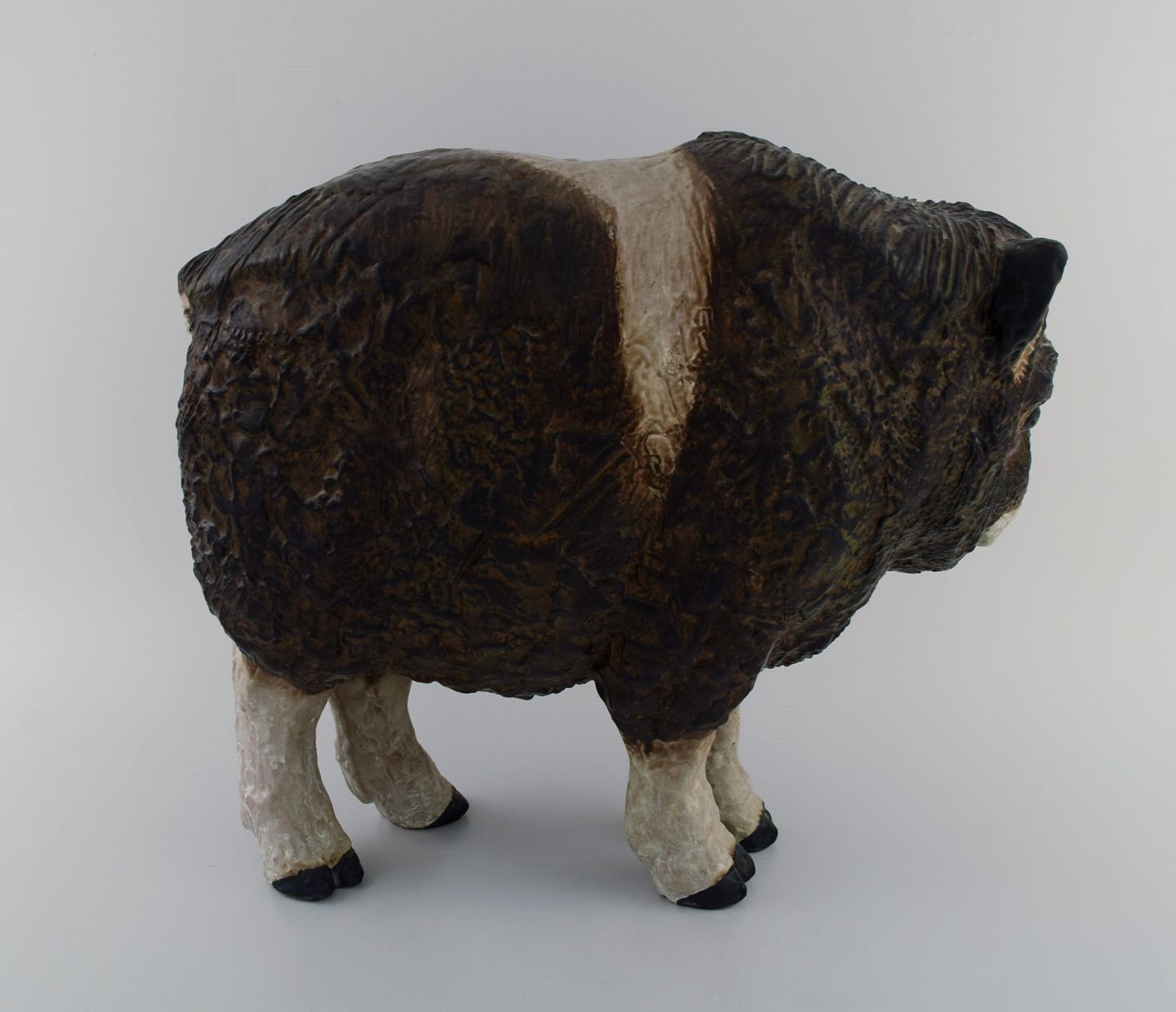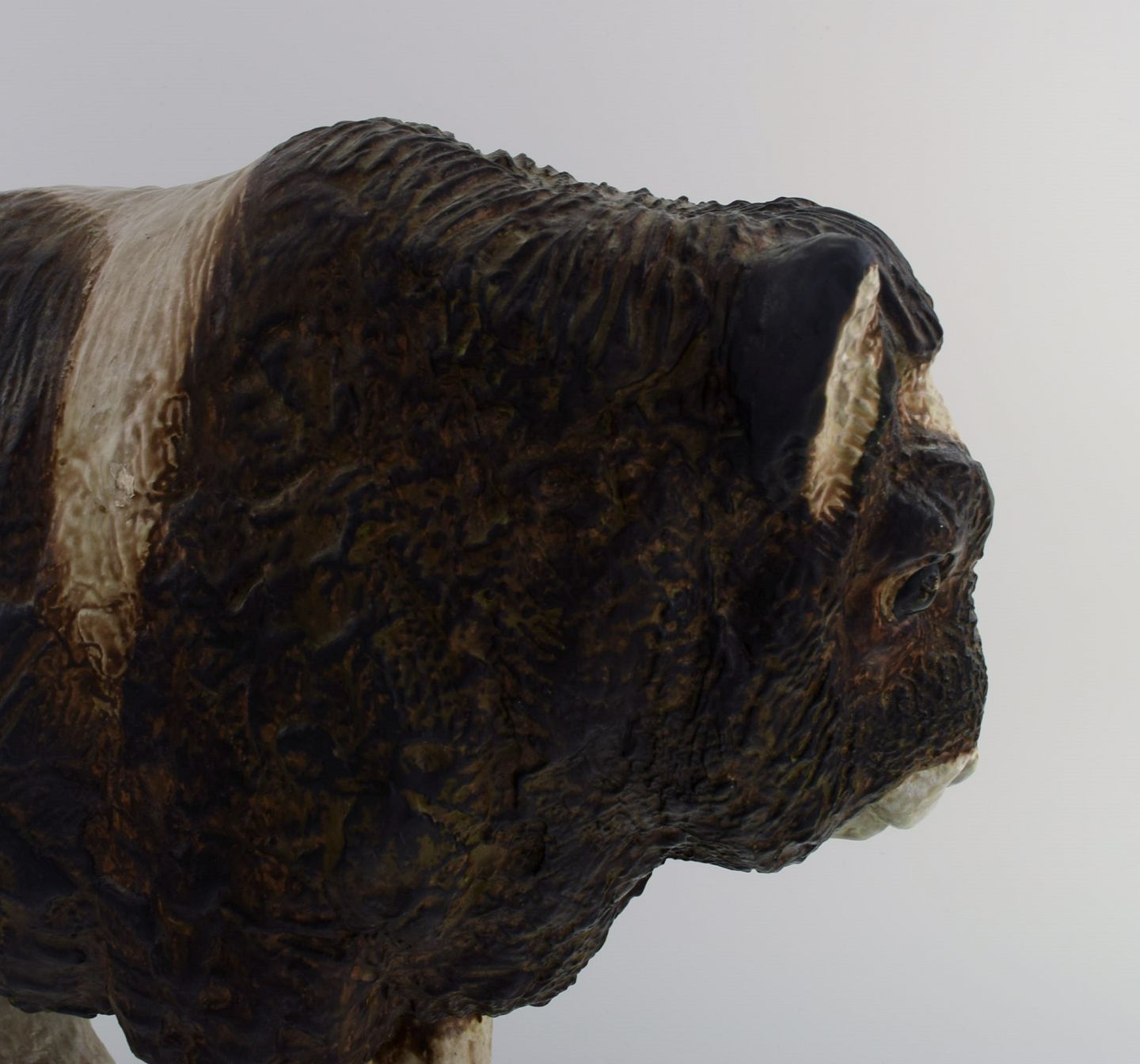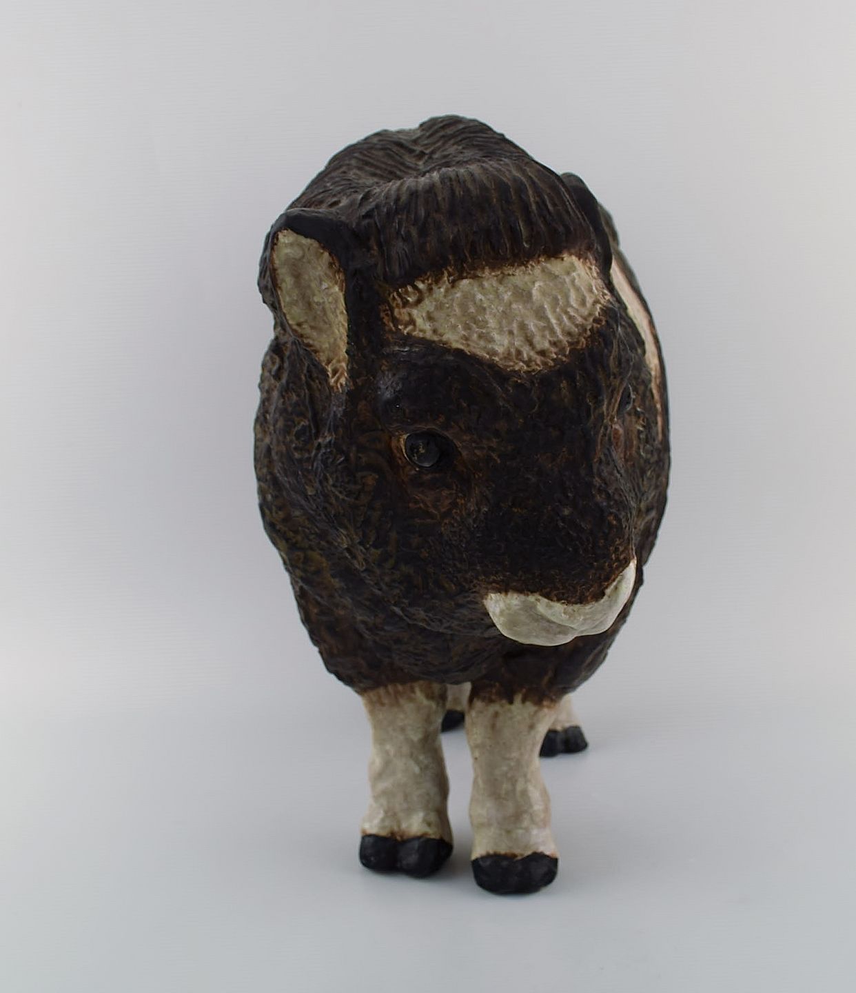 Jeanne Grut for Aluminia. Kolossal skulptur in glaseret keramik. Moskusokse kalv. 1950'erne.