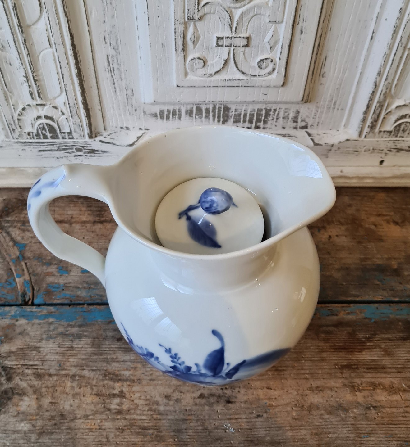 Royal Copenhagen Blå Blomst Flettet stor chokoladekande med låg no. 8246