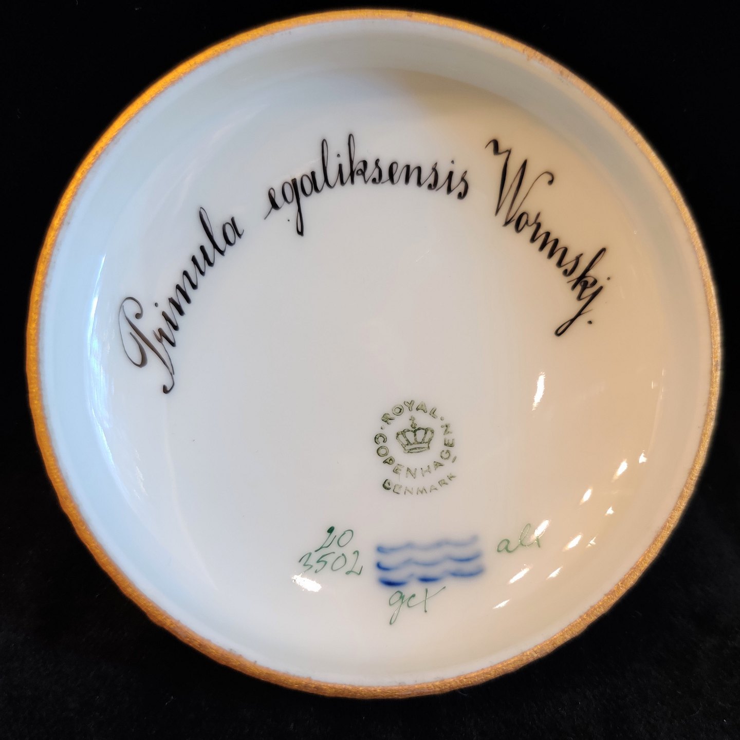 Dekoration: Primula egaliksensis Wormskj. (Grøndlandsk kodriver). Dekoreret i farver og guld med blomster.