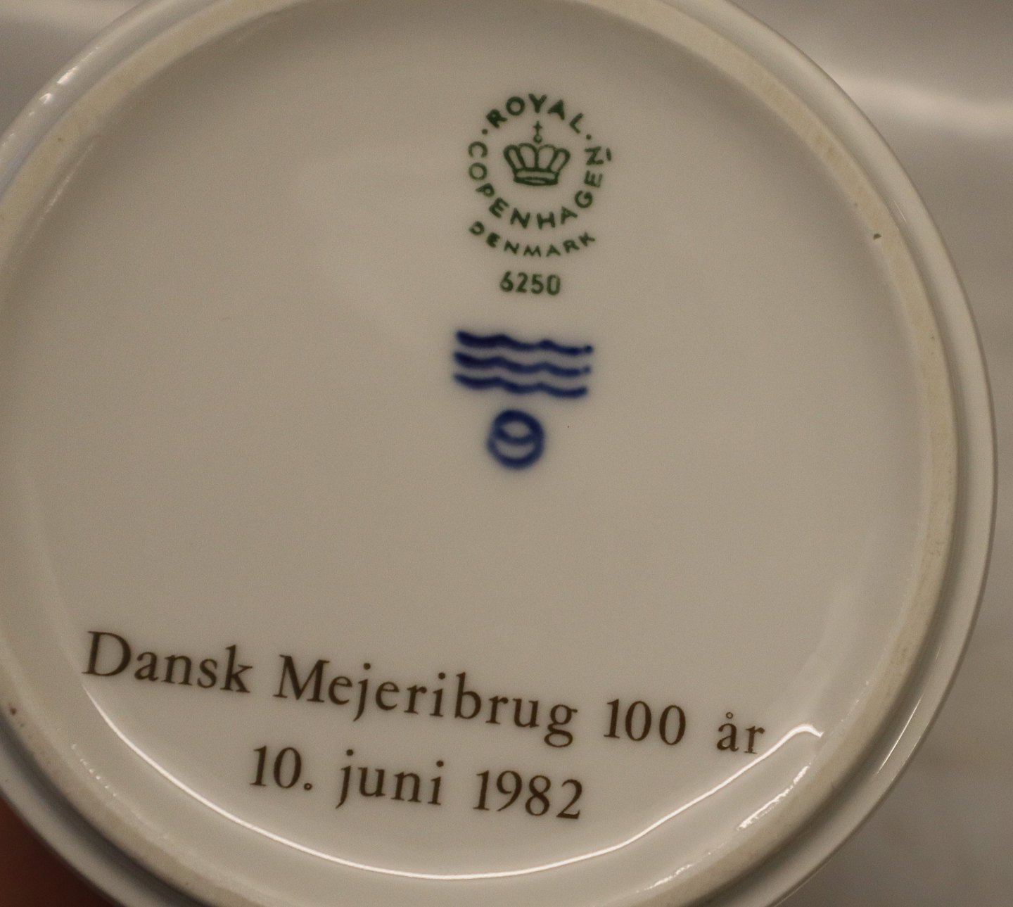 Kgl. 6250 Kande 13 cm Dansk Mejeribrug 100 år 10. juni 1982 Hvidpot Kaffekande fra Royal Copenhagen I hel og fin stand