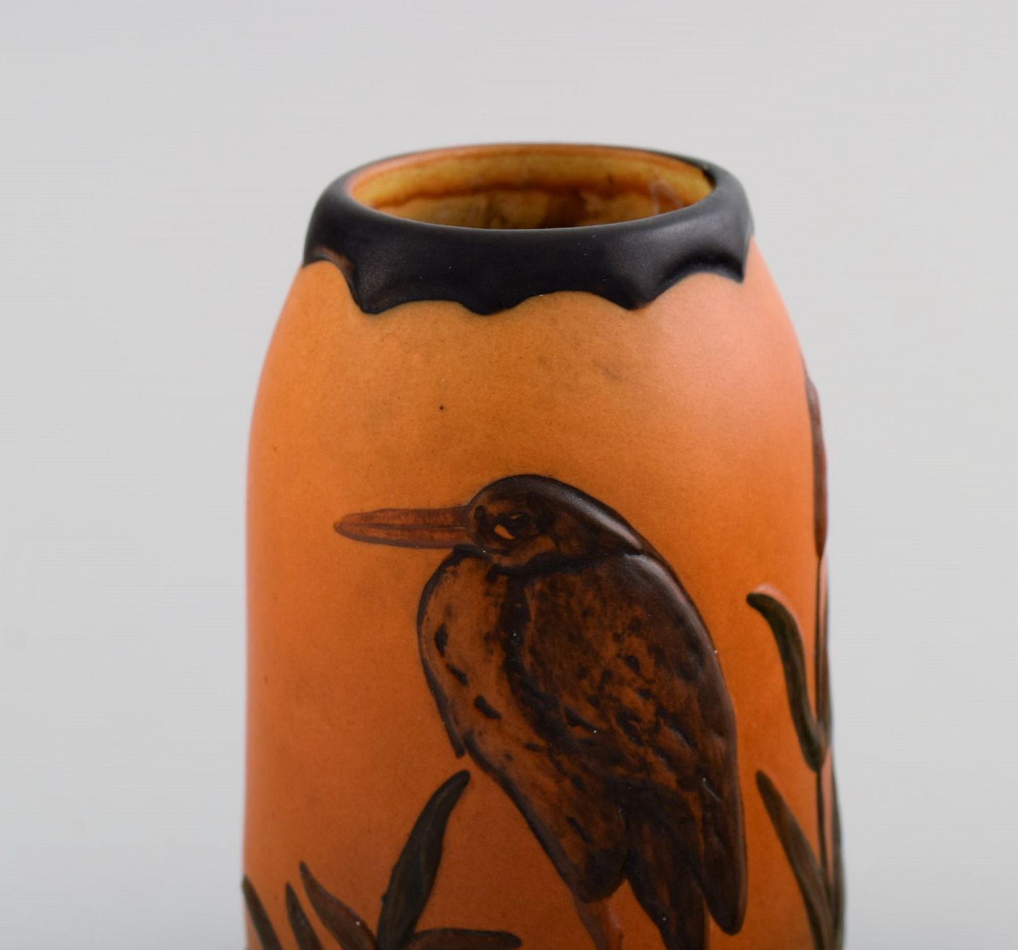 Ipsen's, Denmark. Vase in hand-painted glazed ceramics decorated with bird. 1920s / 30s. Model number 749.