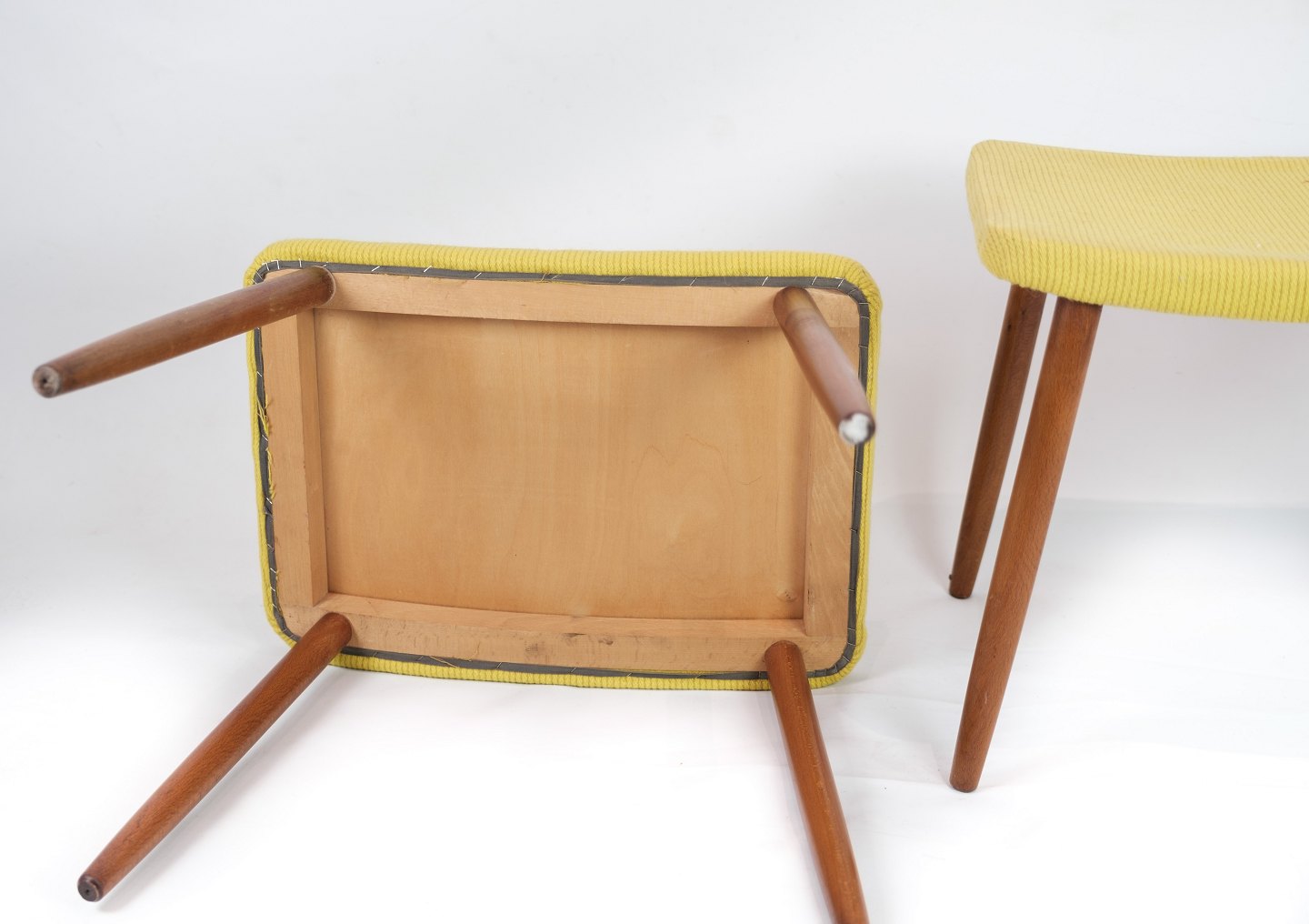 Vintage skammel - Gult Stof - Ben I Teak - Dansk Design - 1960