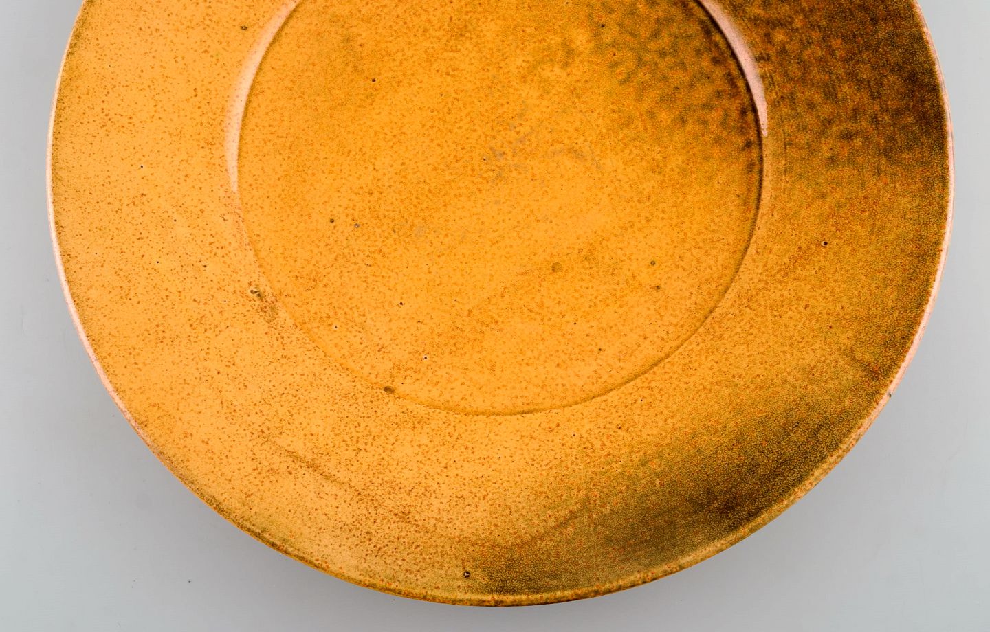 Svend Hammershøi for Kähler, HAK. Stor skål / fad i glaseret stentøj. Smuk gul uranglasur. 1930/40'erne.