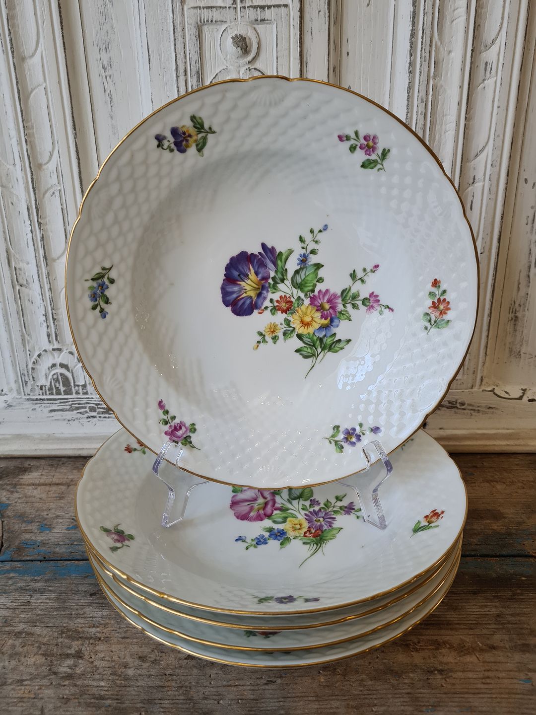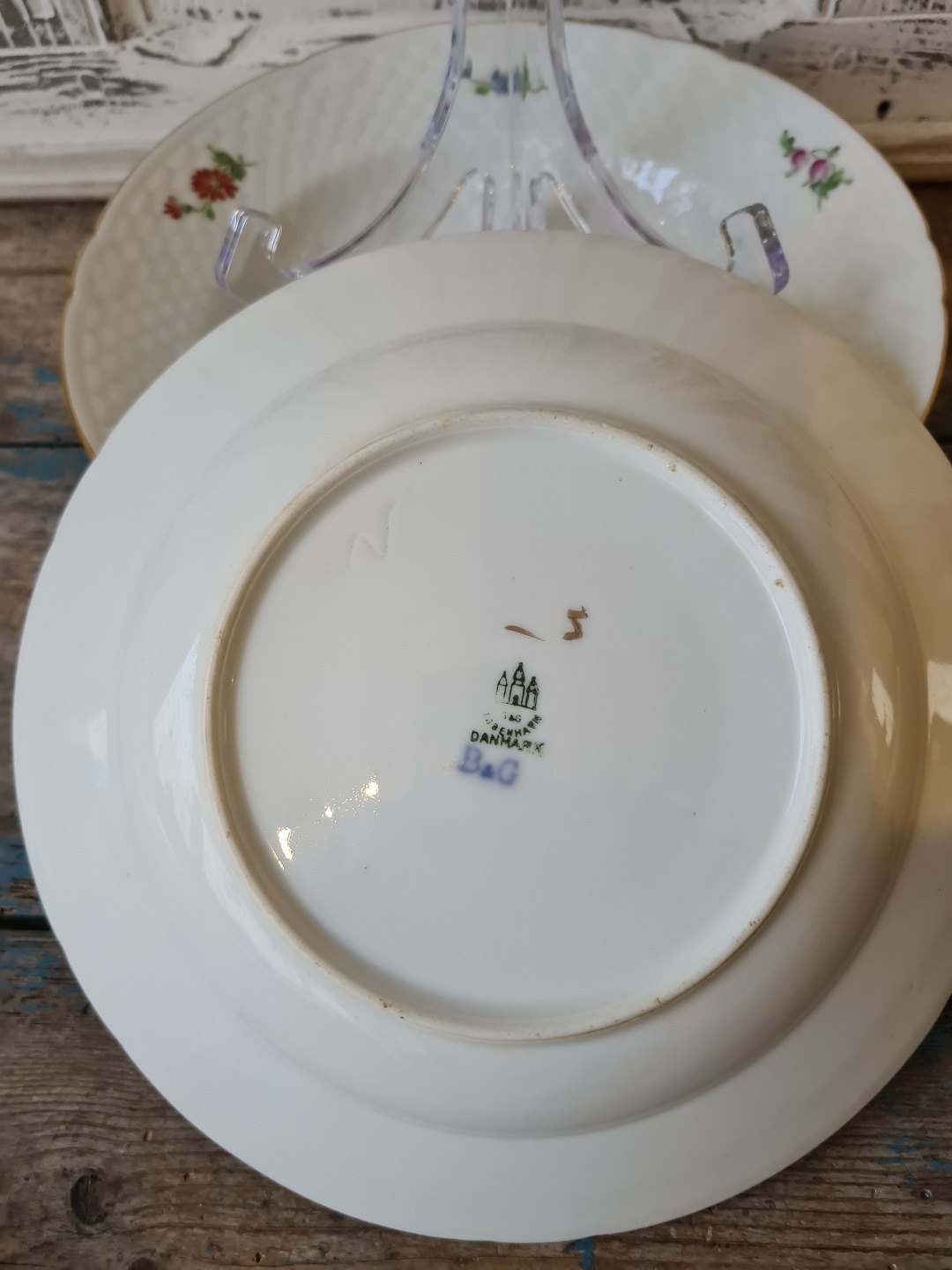 B&G Håndmalet Saksisk Blomst stor dybtallerken 24,5 cm.