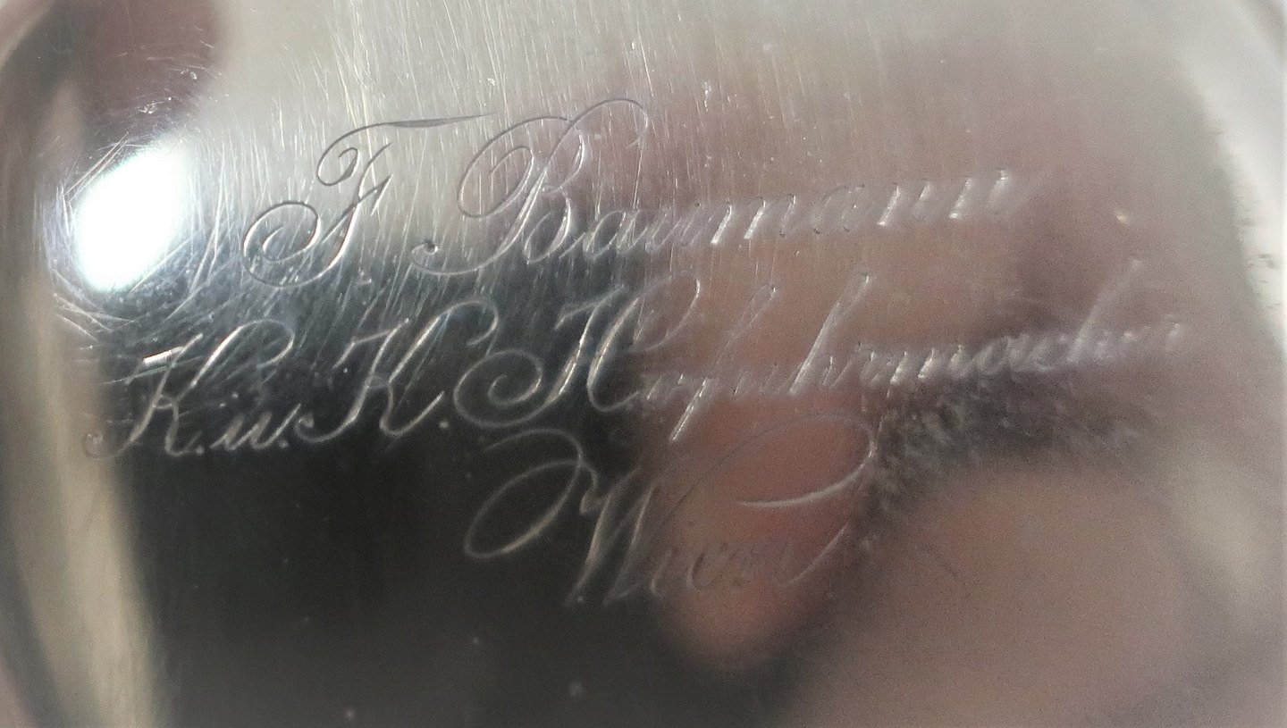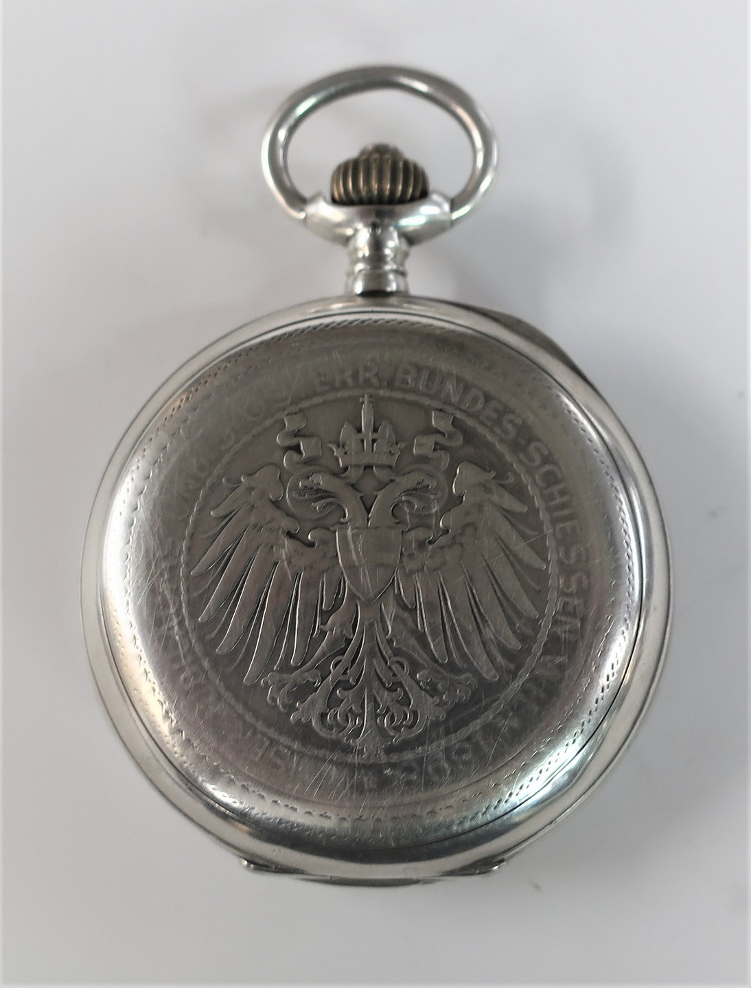 Dobbeltkapslet sølvlommeur. JWC. Forside: Kejser Franz Joseph. Bagside : østrigske dobbeltørn. Diameter 50 mm. Urværk er ok. K.u.K Hofuhrmacher, Friedrich Baumann Wien