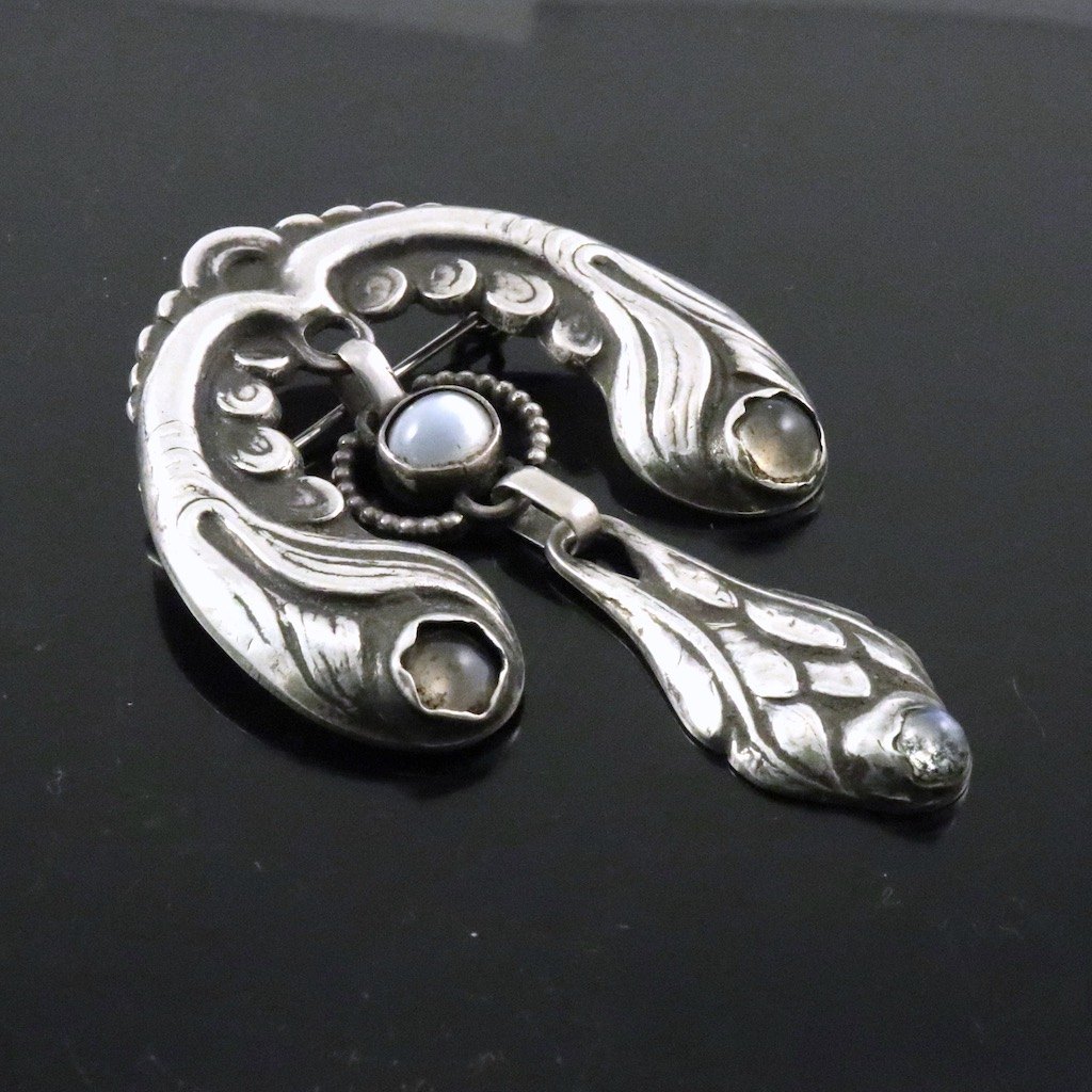 William Fuglede 1907-1937. Skønvirke Broche i sølv med månesten.