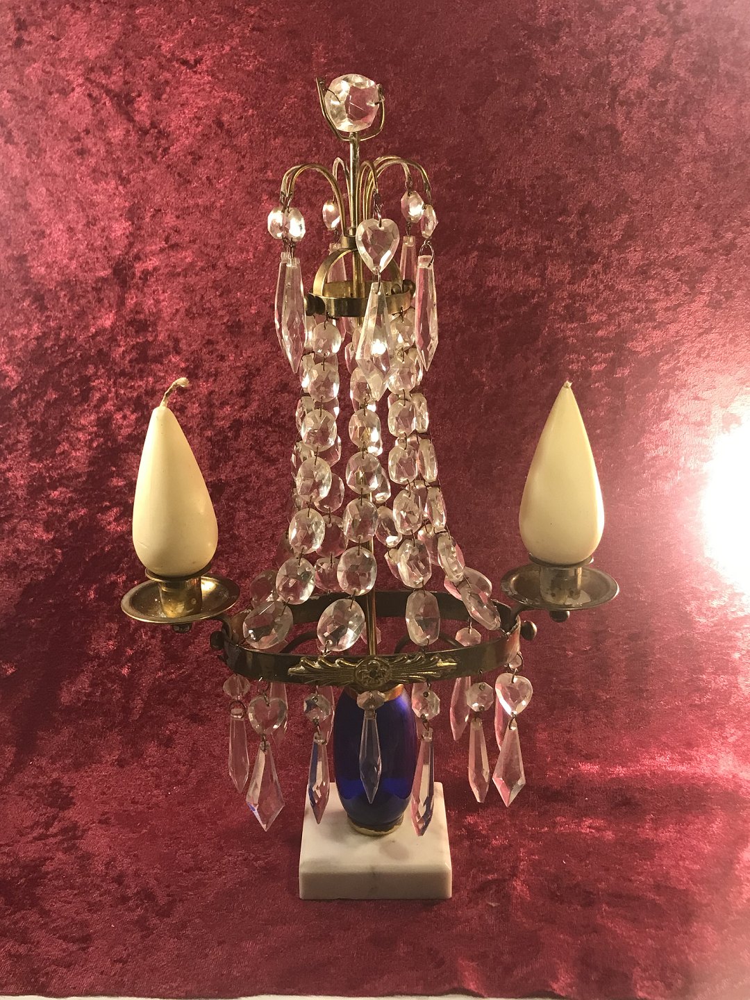Prisme messing lysestager fra 1900 tal , med Marmor i ben .