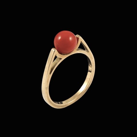 Henning Ulrichsen. Ring i 14k guld med koral.