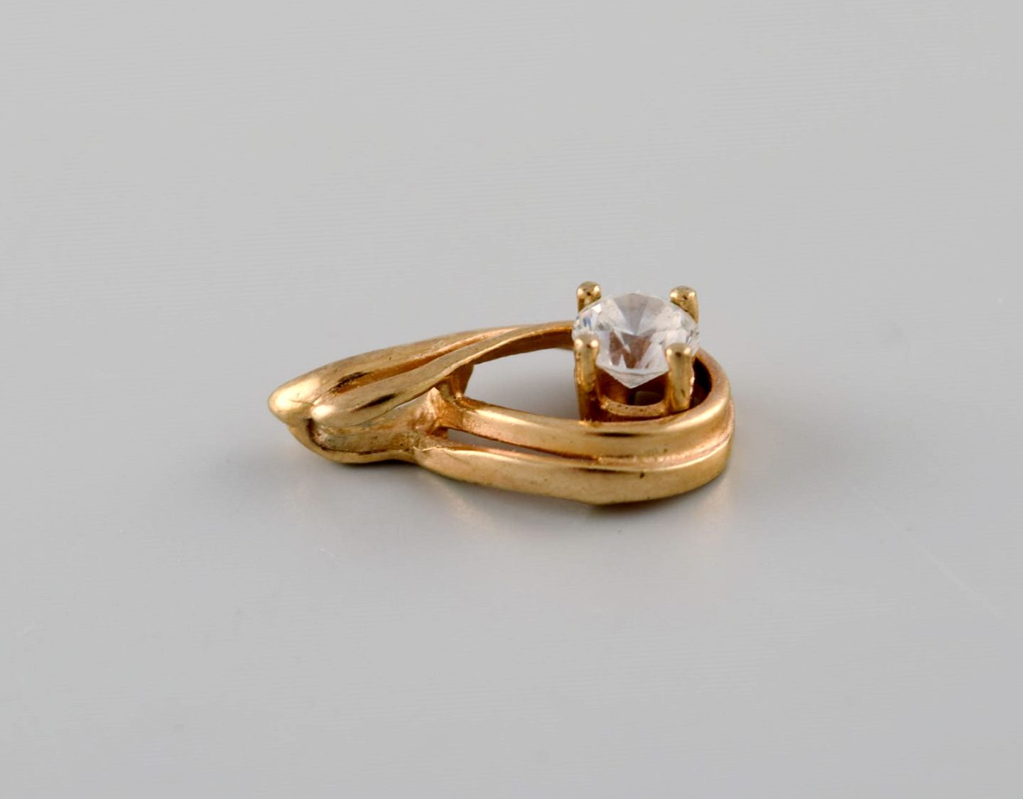 Skandinavisk guldsmed. Vedhæng i 14 karat guld prydet med halvædelsten.