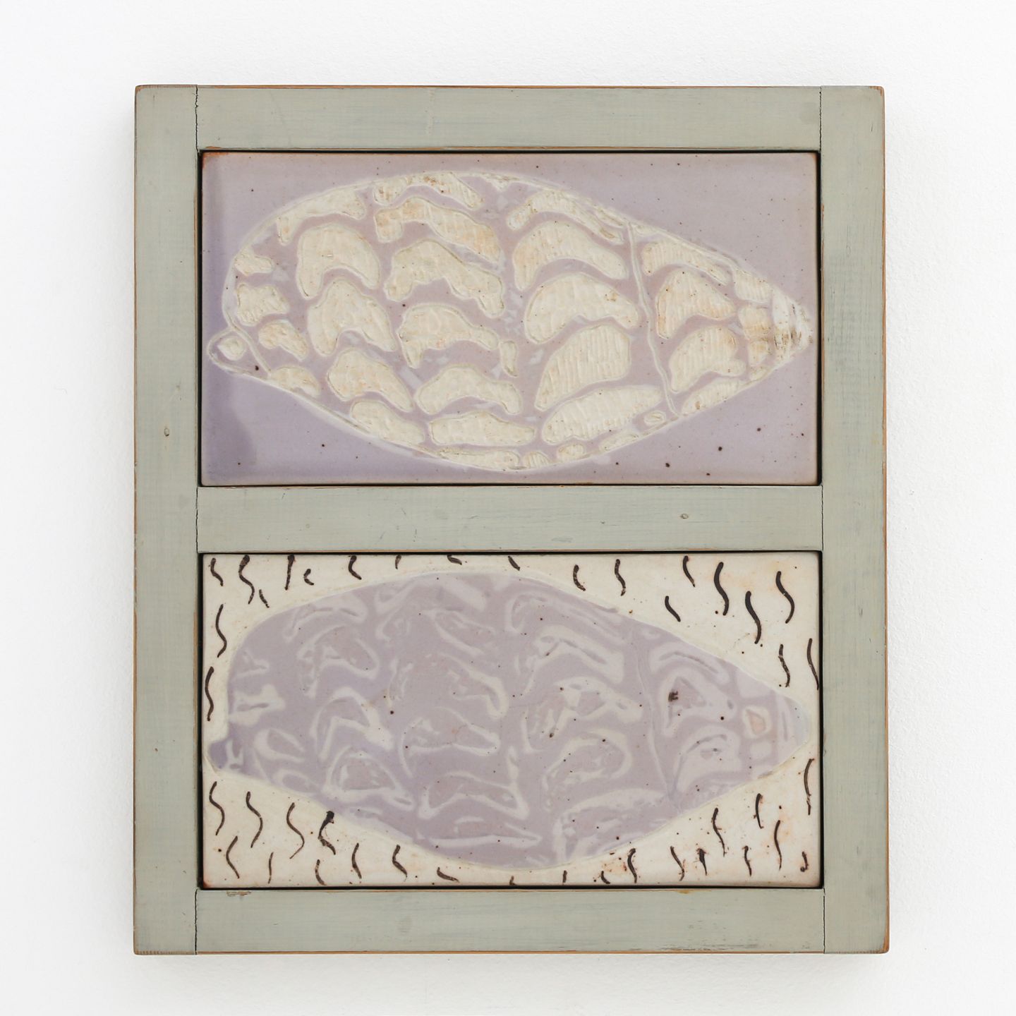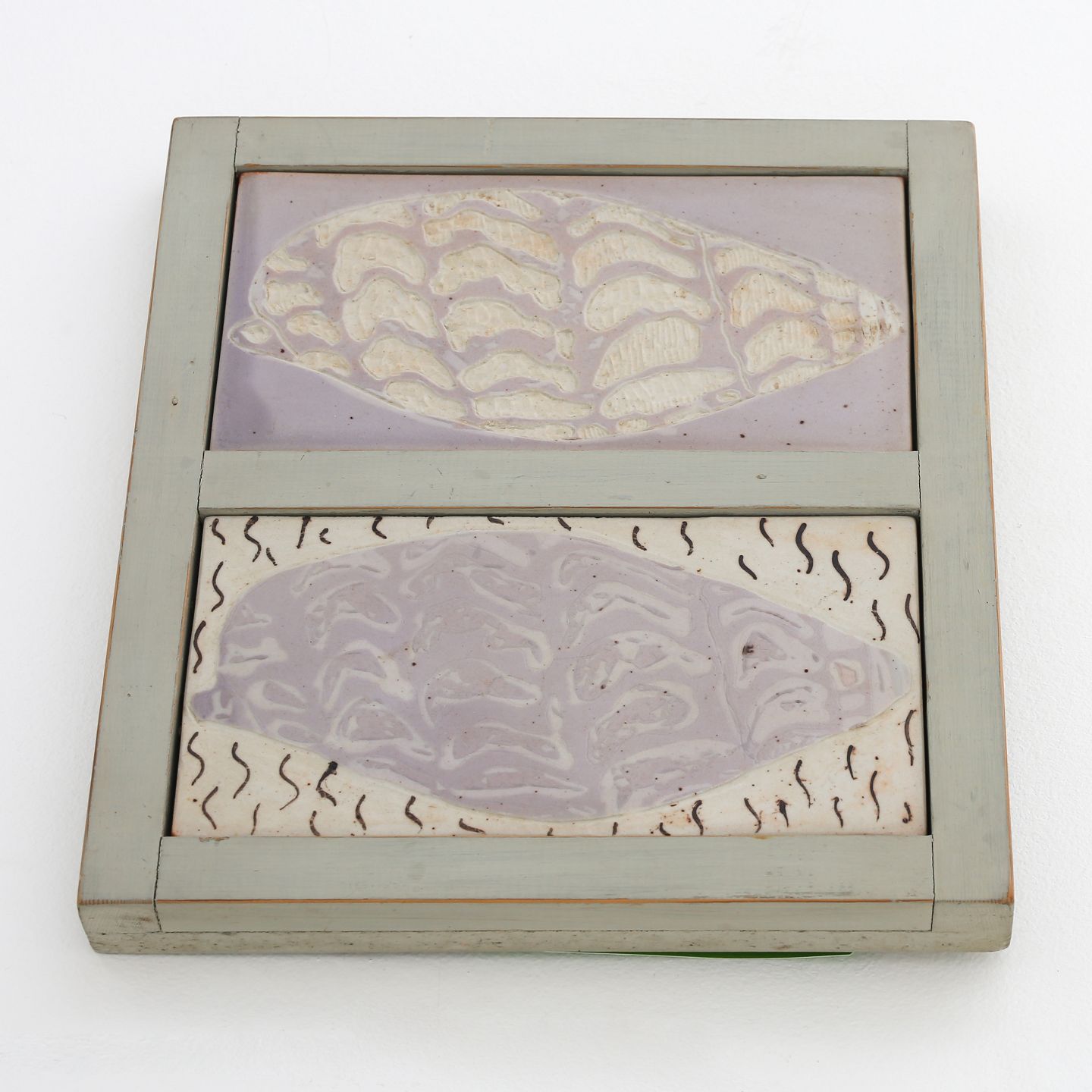 Relief af porcelænsfliser med motiv af konkylier. Signeret.