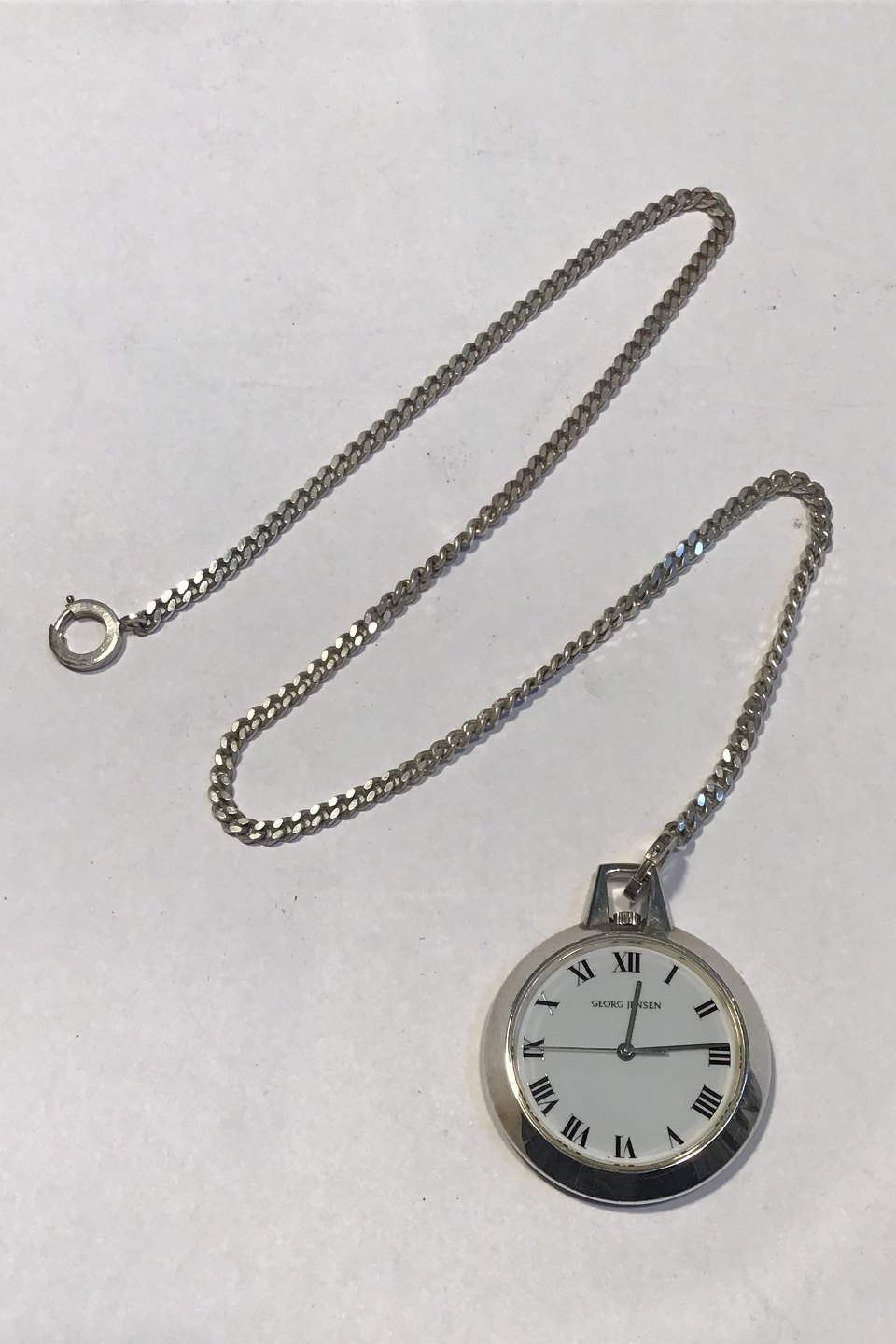 Georg Jensen Sterling Sølv Lommeur No 2367 Quartz Lene Munthe Måler Diam 3.3 cm (1.29 inch) Samlet vægt 45.2 gr / 1.59 oz Samt urkæde af sterlingsølv, L. 42 cm (16.5 inch)