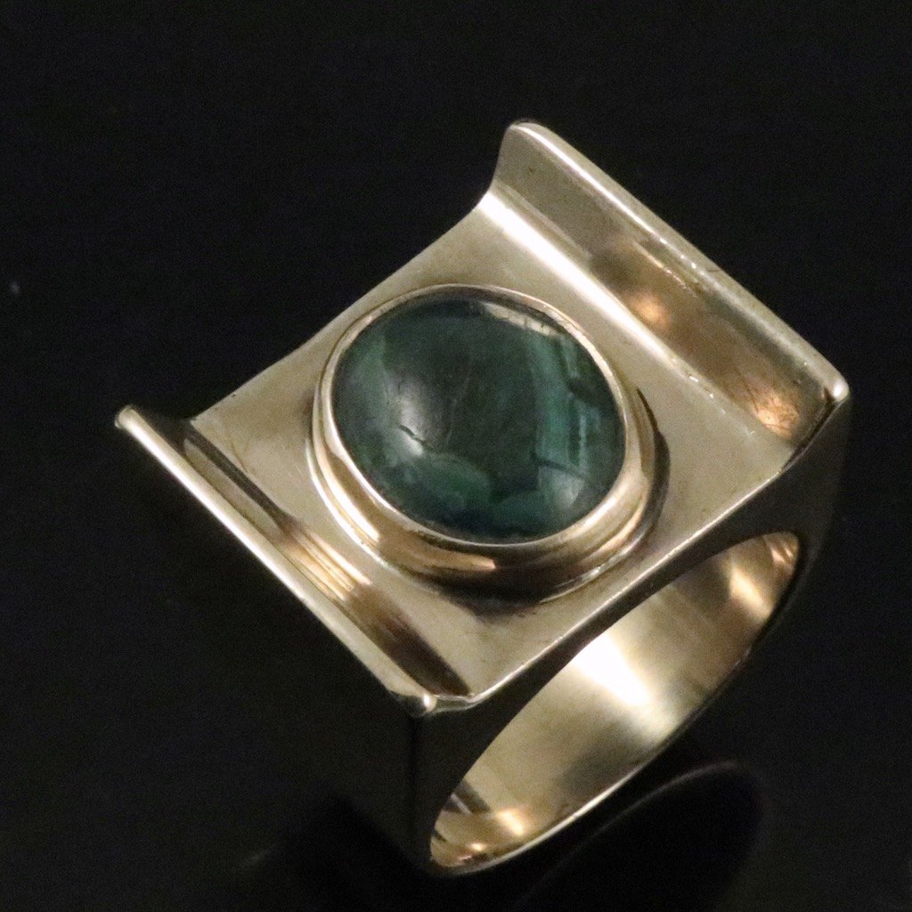 Niels Ingvardt Johansen. Ring i 14k Guld med Malakit.