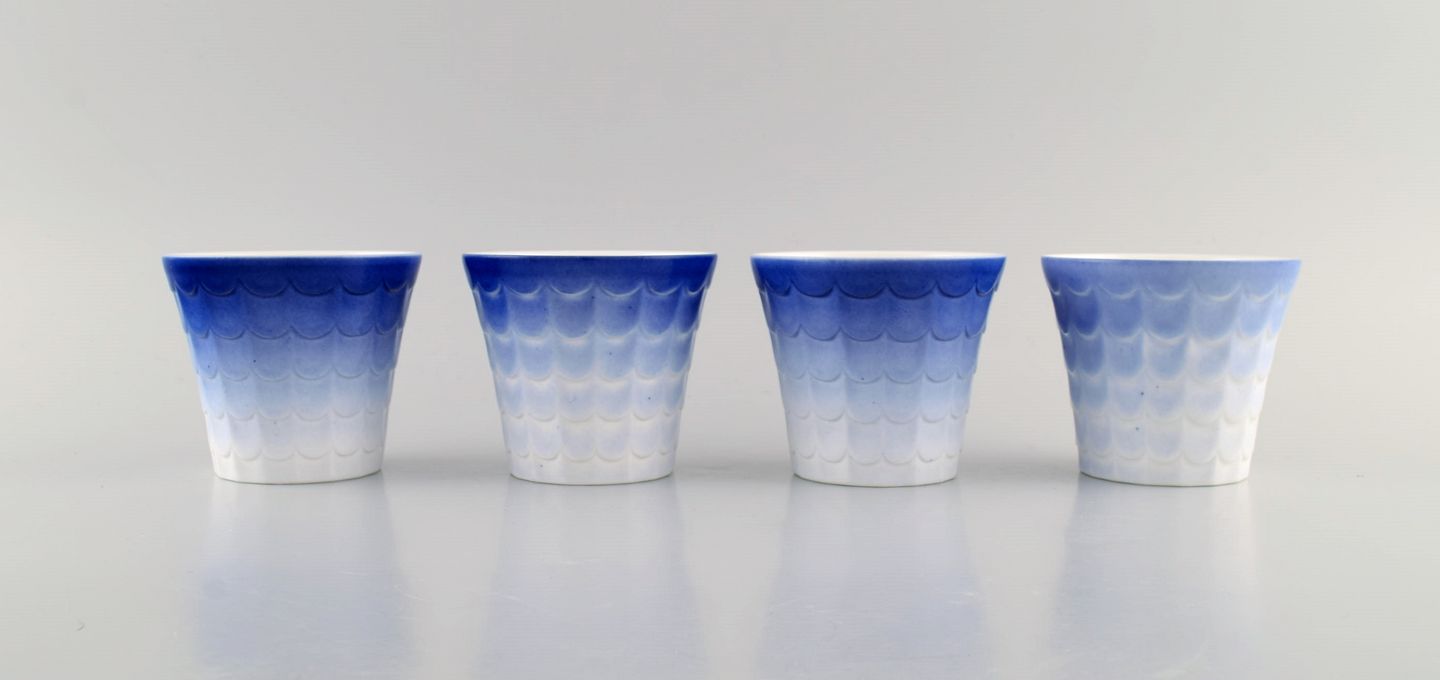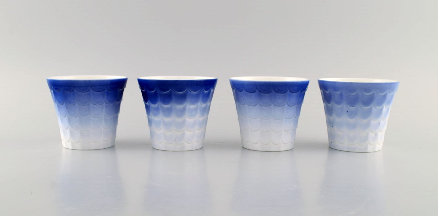 Wilhelm Kåge for Gustavsberg. Fire art deco urtepotter i glaseret porcelæn. Svensk design, 1960'erne.