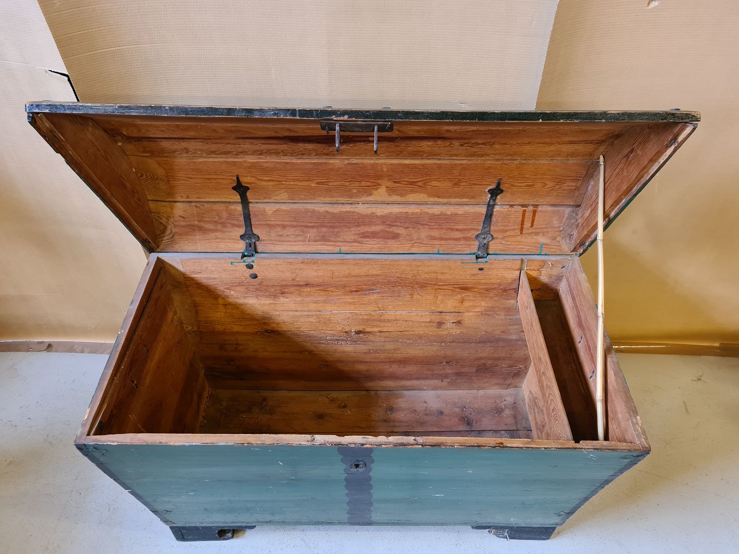 Kiste i malet fyrretræ fra 1900erne.