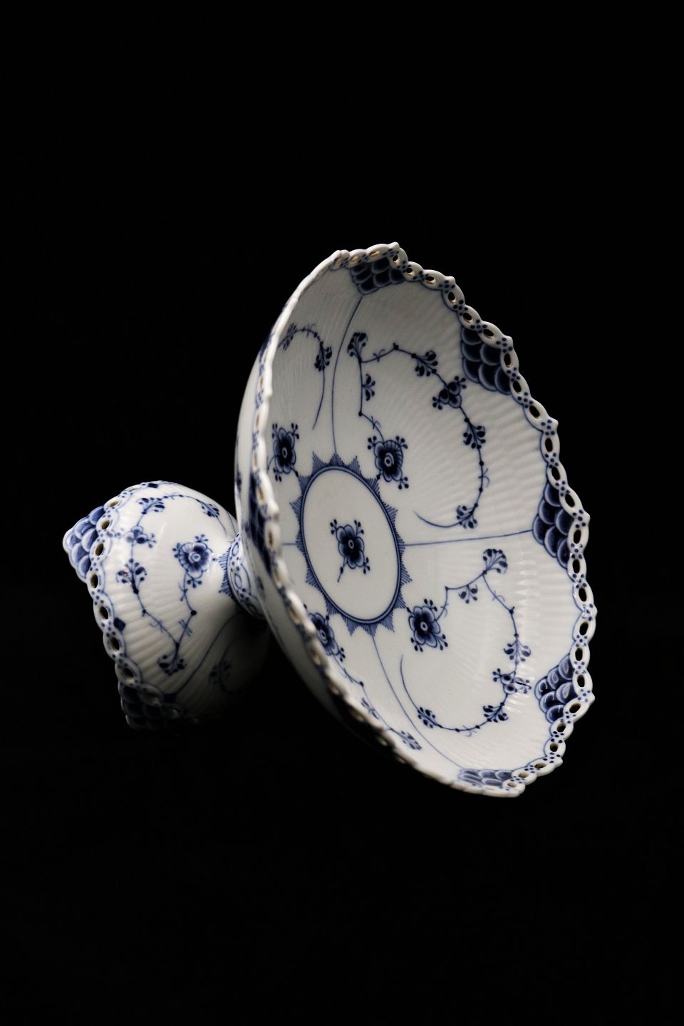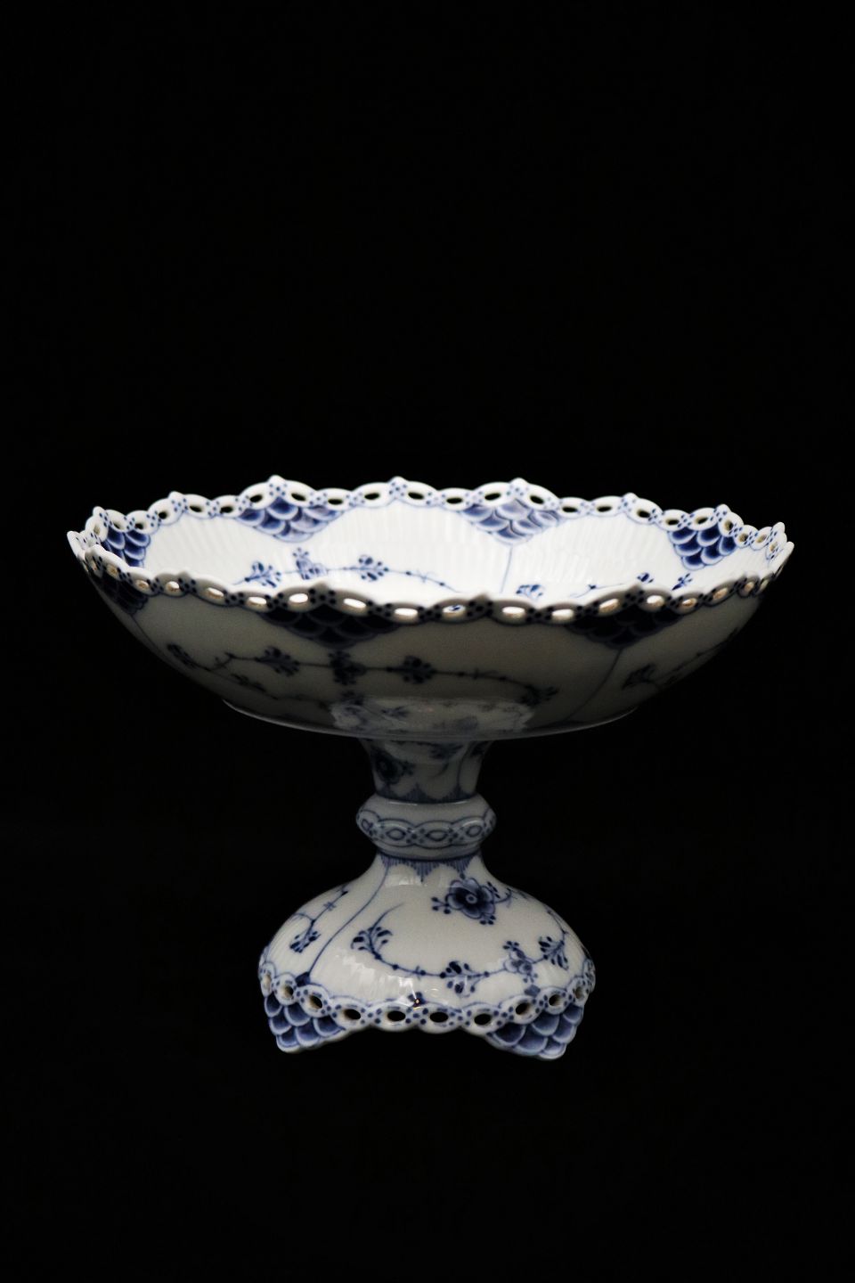 Antique Royal Copenhagen Blue Fluted Full Lace bowl on foot.