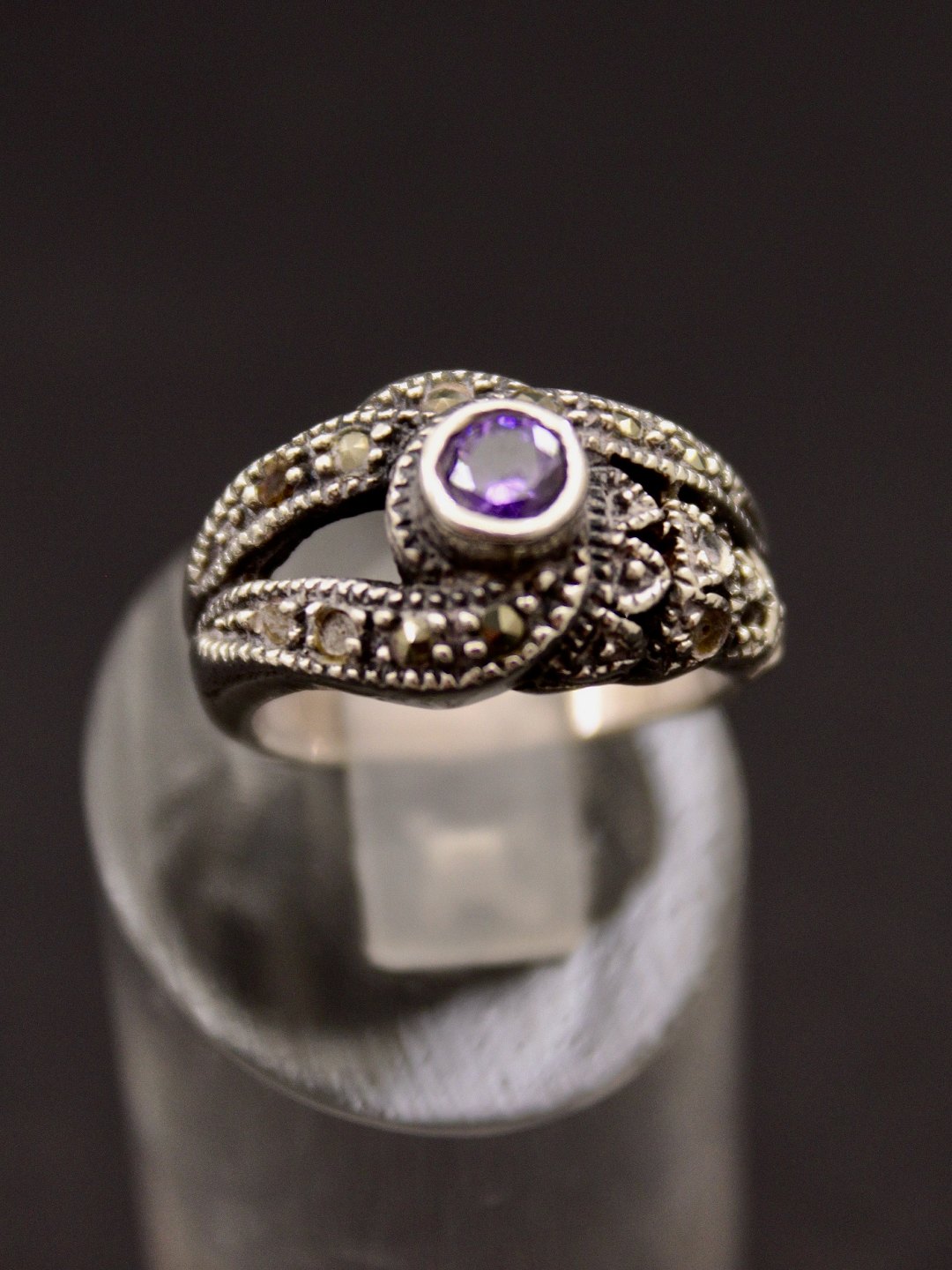 Sterling sølv ring størrelse 52-53 med ametyst emne nr. 490723