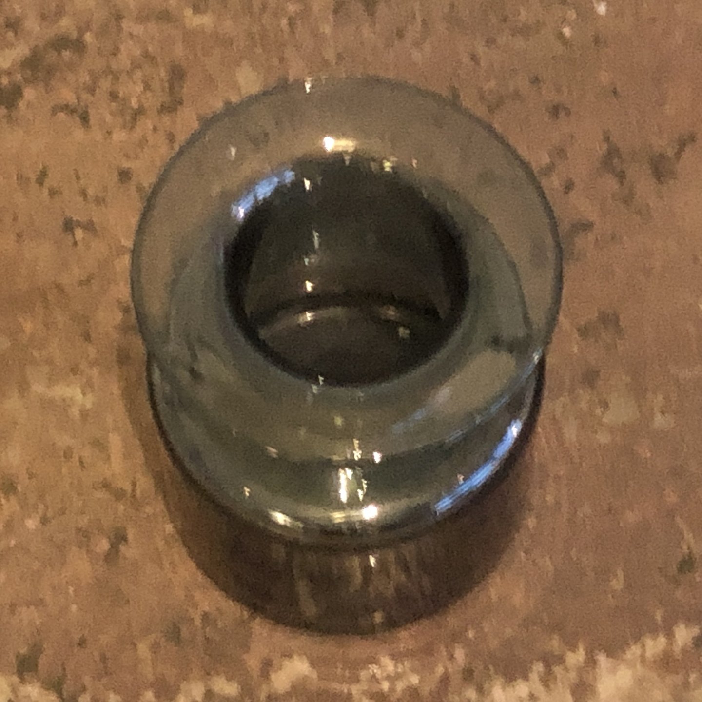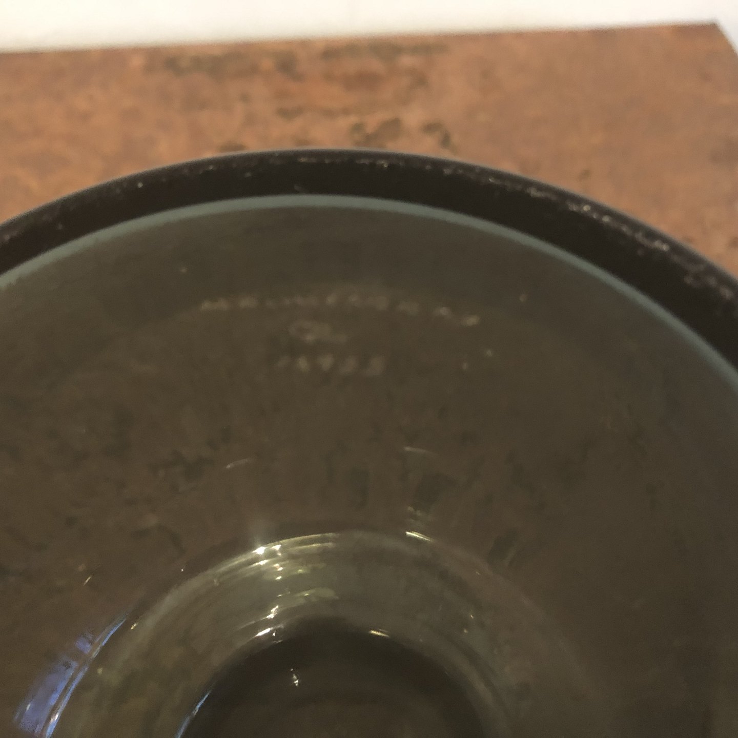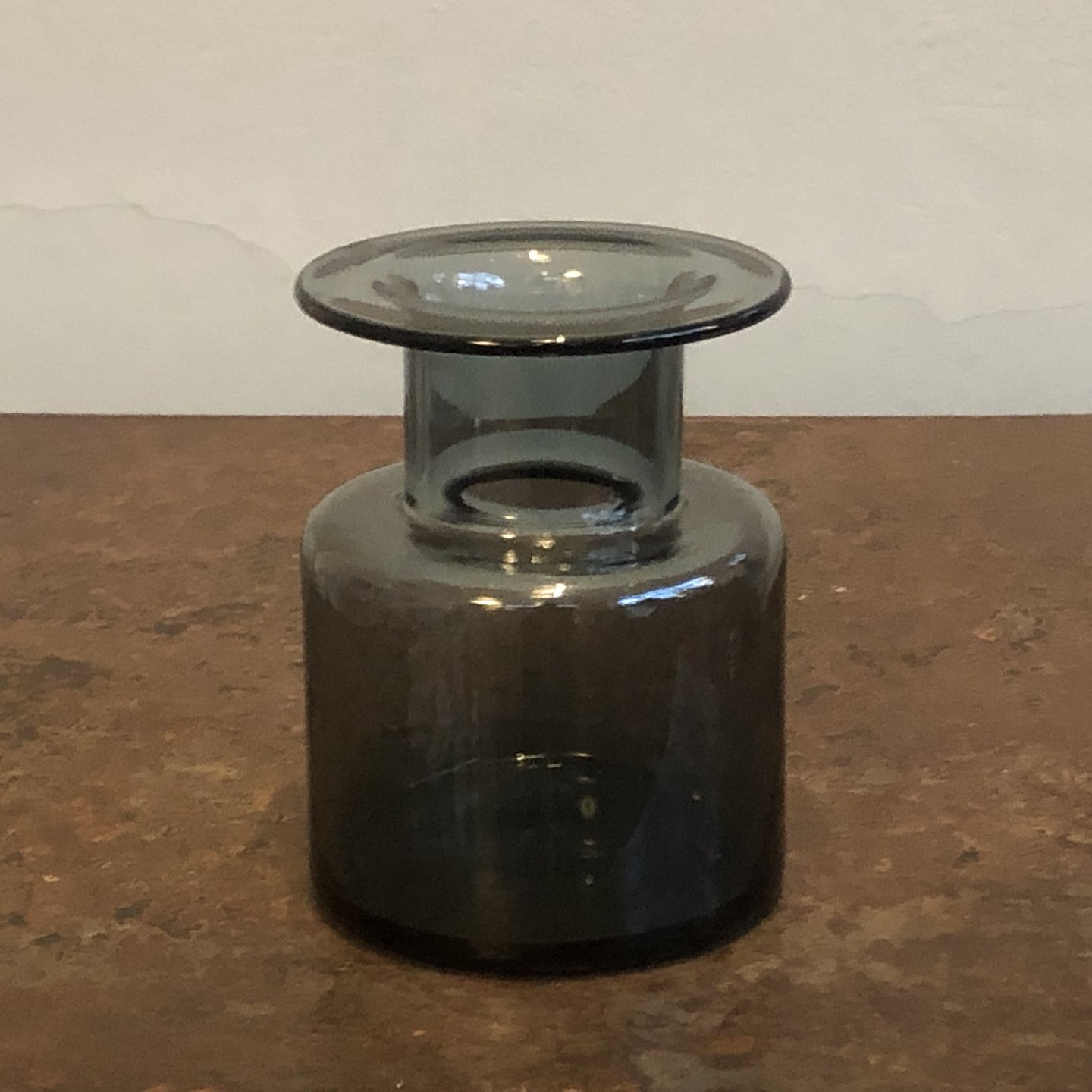 Per Lütken Labrador blågrå glasvase. H. 12,9 cm. Ø 9,8 cm. Signeret Holmegaard 16985 samt PL. Designet ca 1960.