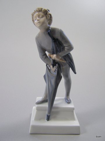 R.C. 1129 Dreng med Paraply 1. Sort. H: 17 cm.