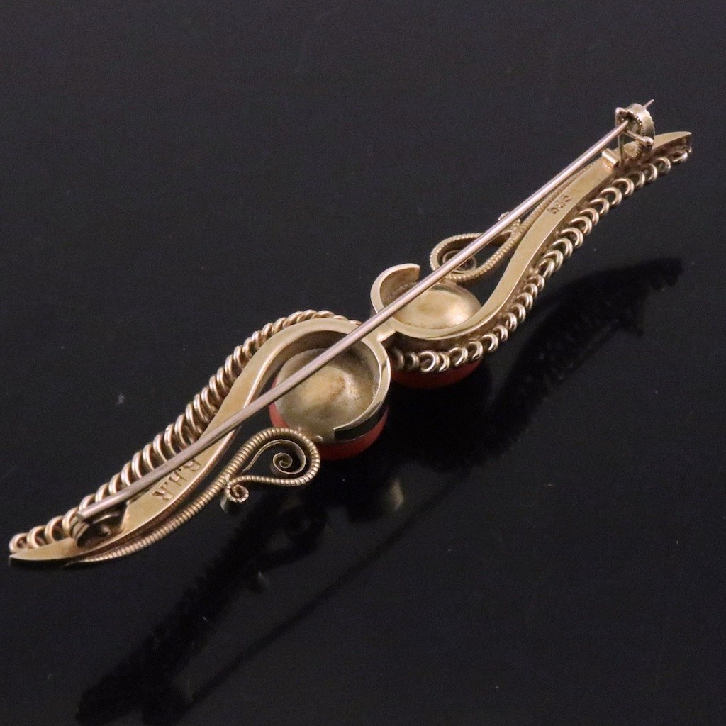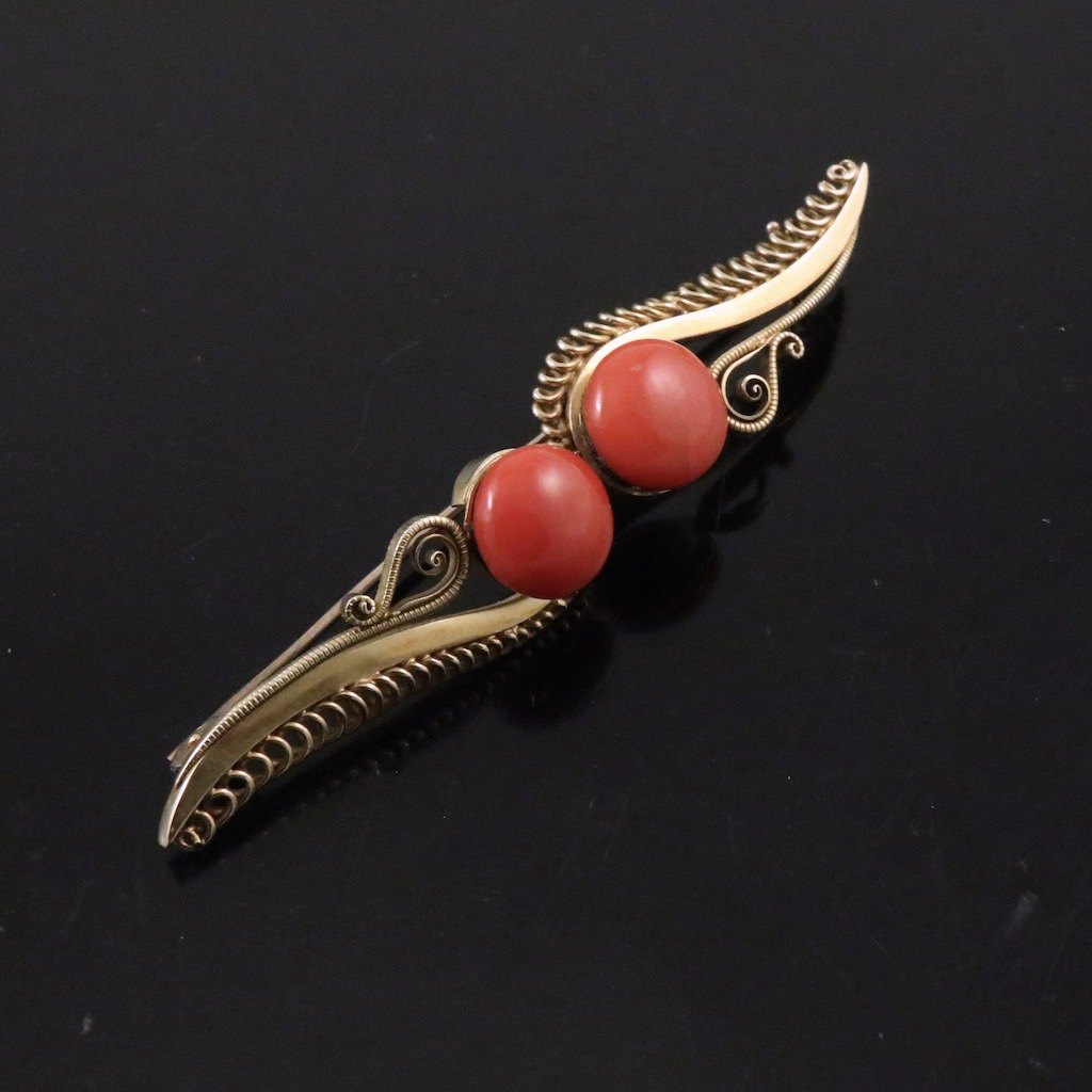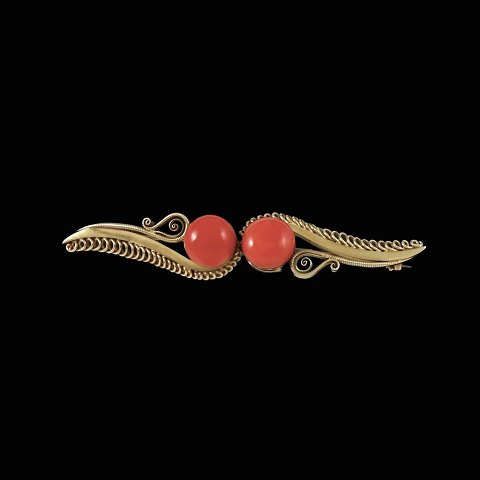 Bodil Hendel Rossenhoff. Skønvirke broche i 14k guld med koral.