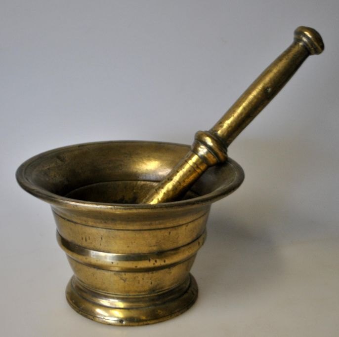 Barok morter med pistil i messing, 17./18. årh. Danmark