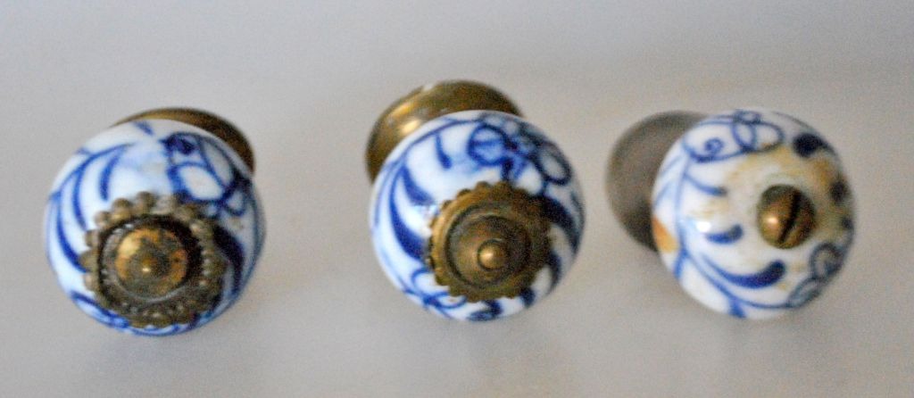 3 porcelæns håndtag, 19. årh. Tyskland. Dia.: 3 cm.