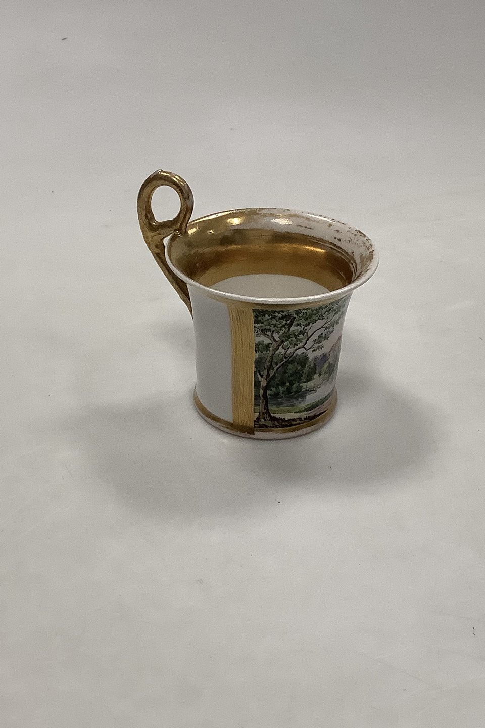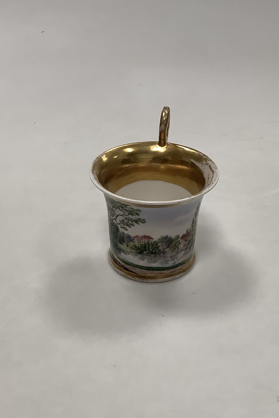 Antik Royal Copenhagen Kop med motiv af hus og sø