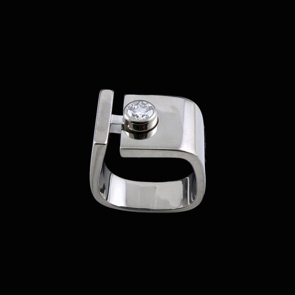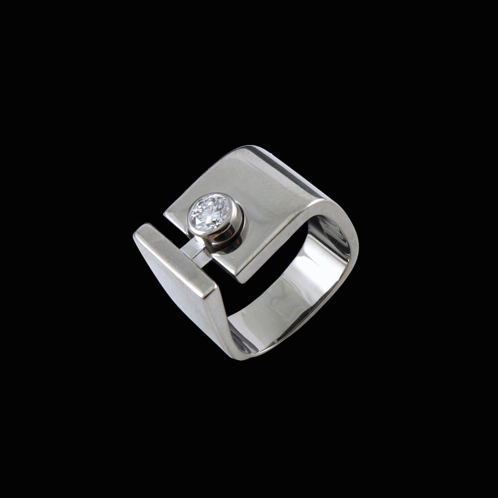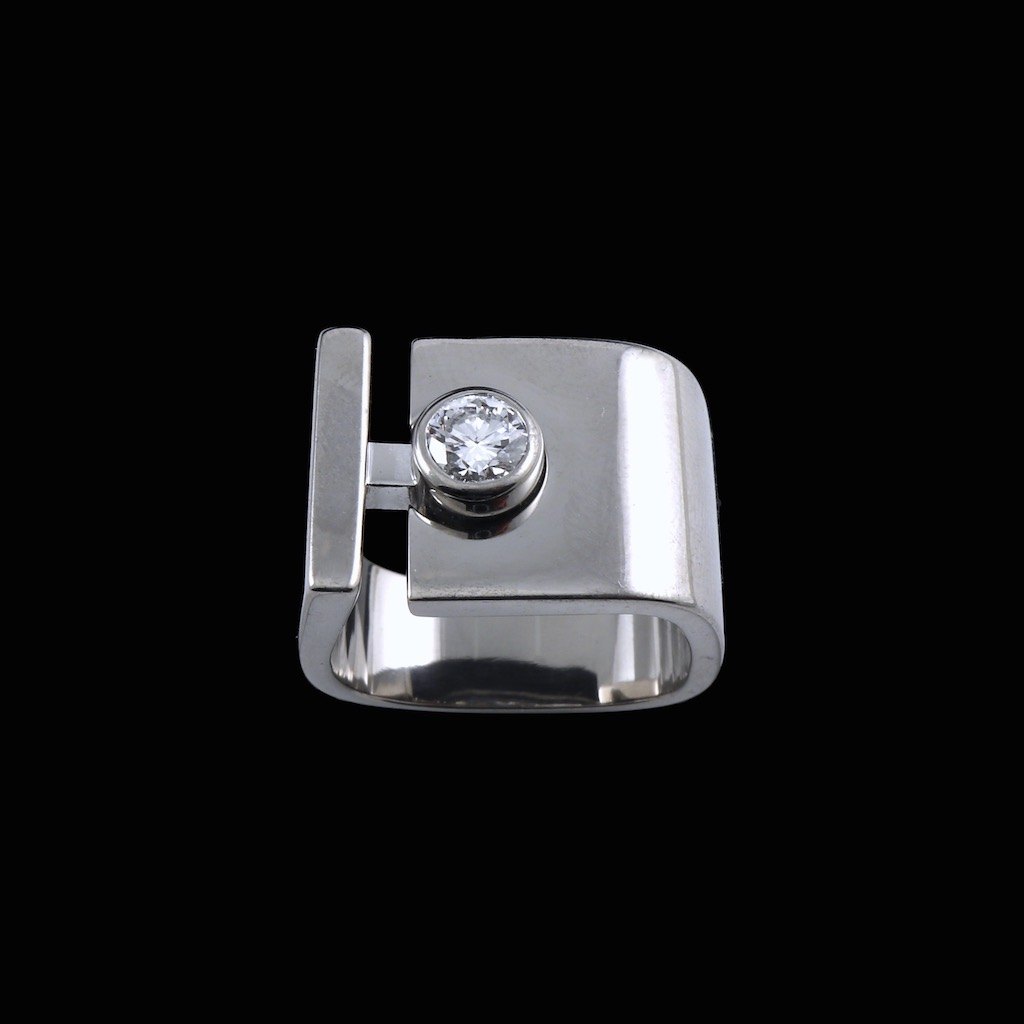Georg Jensen. Solitairering i 18k hvidguld med diamant 0.50ct. 1945-51.