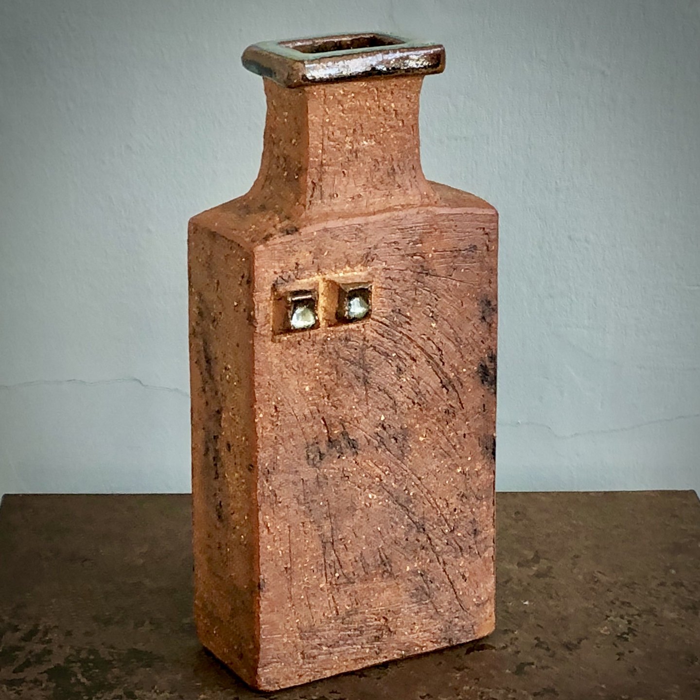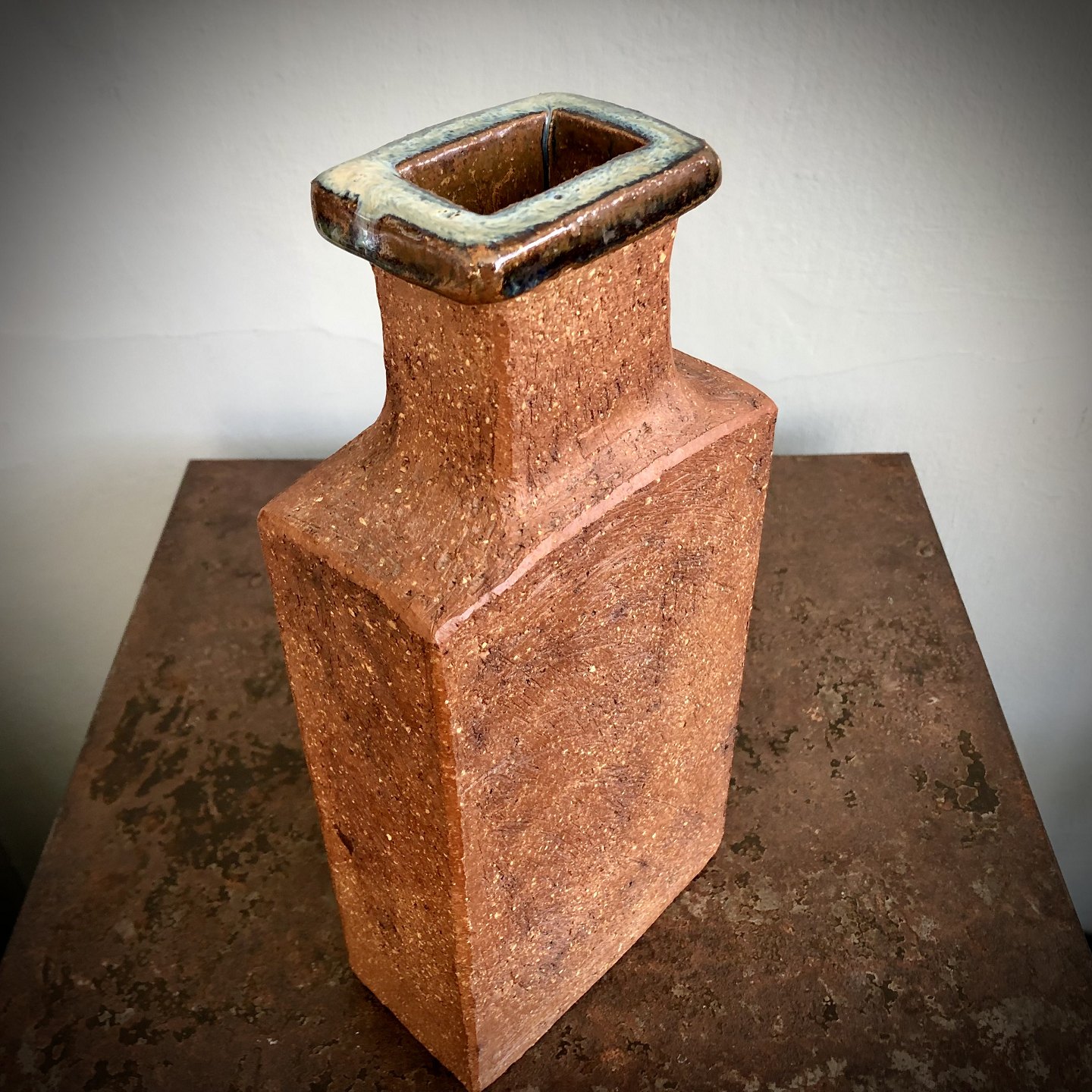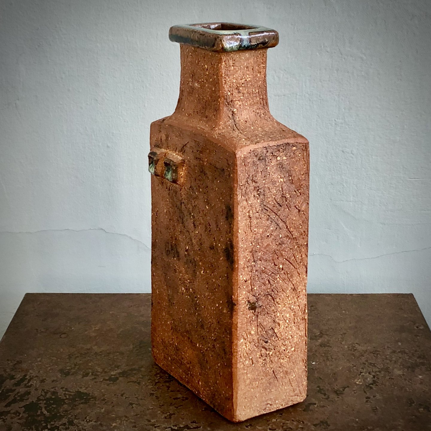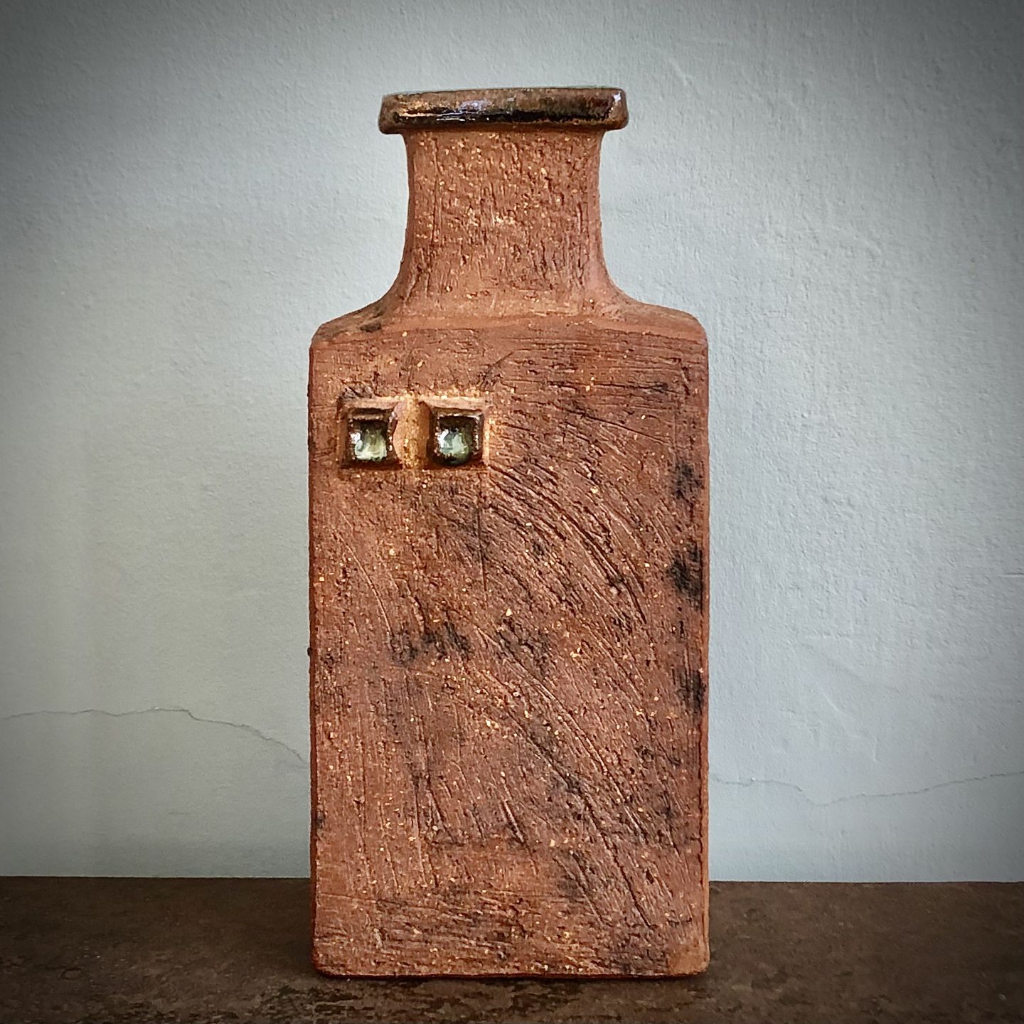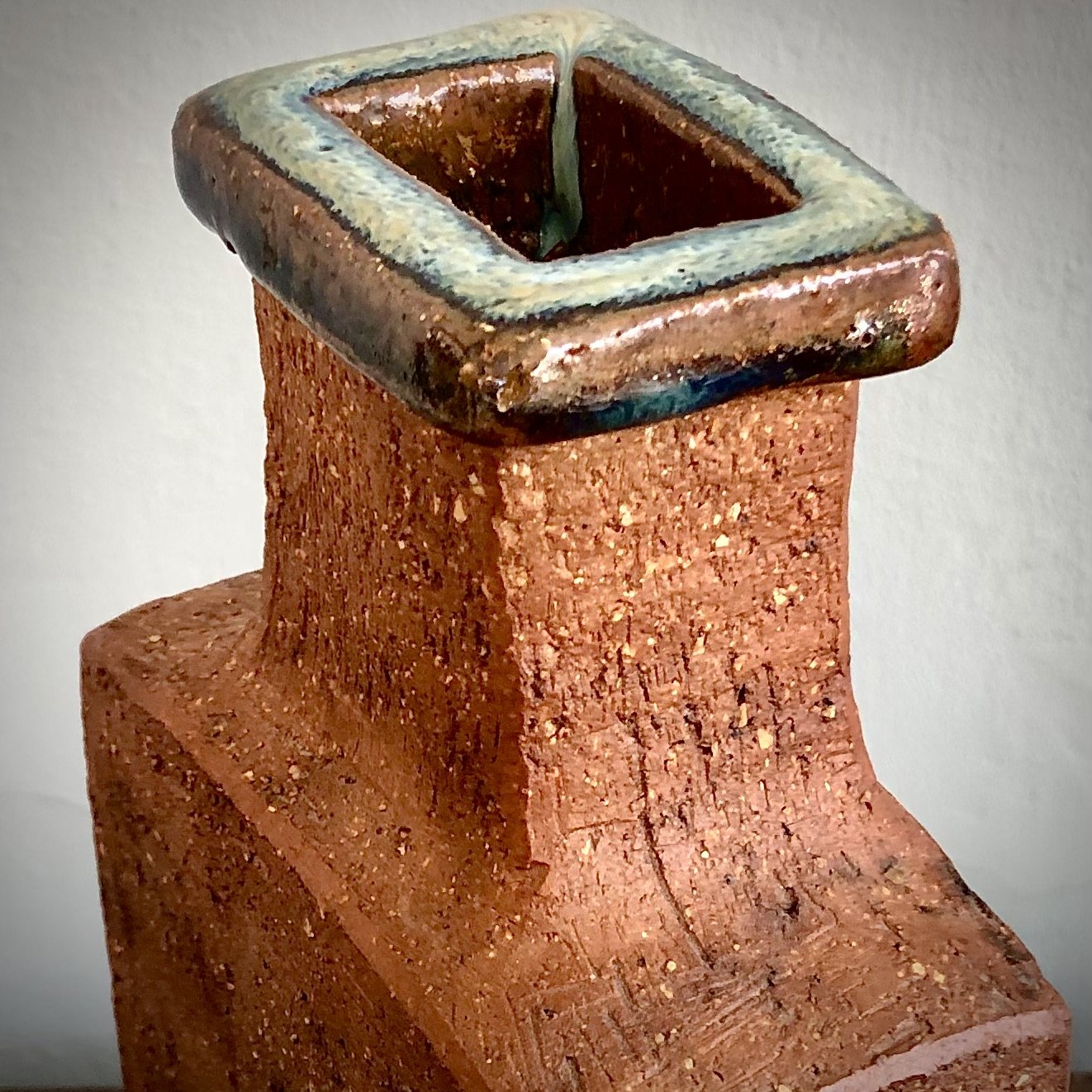 Curt M Addin Glumslov Vase af stentøj. Munding med flerefarvet (Blågrøn og hvid) glasur
