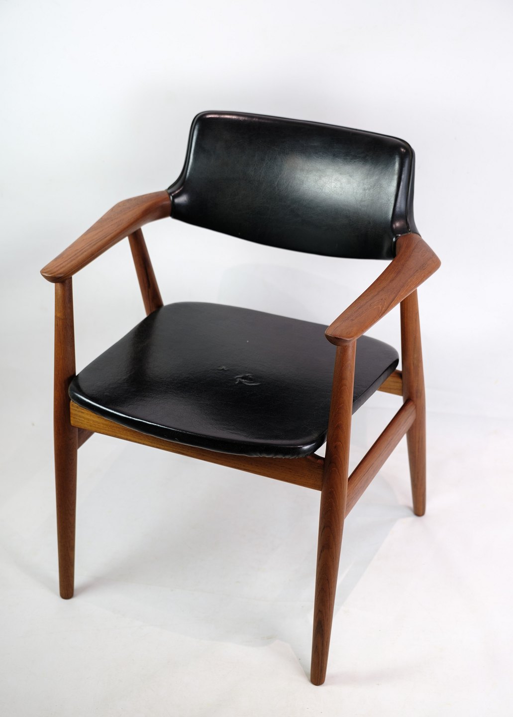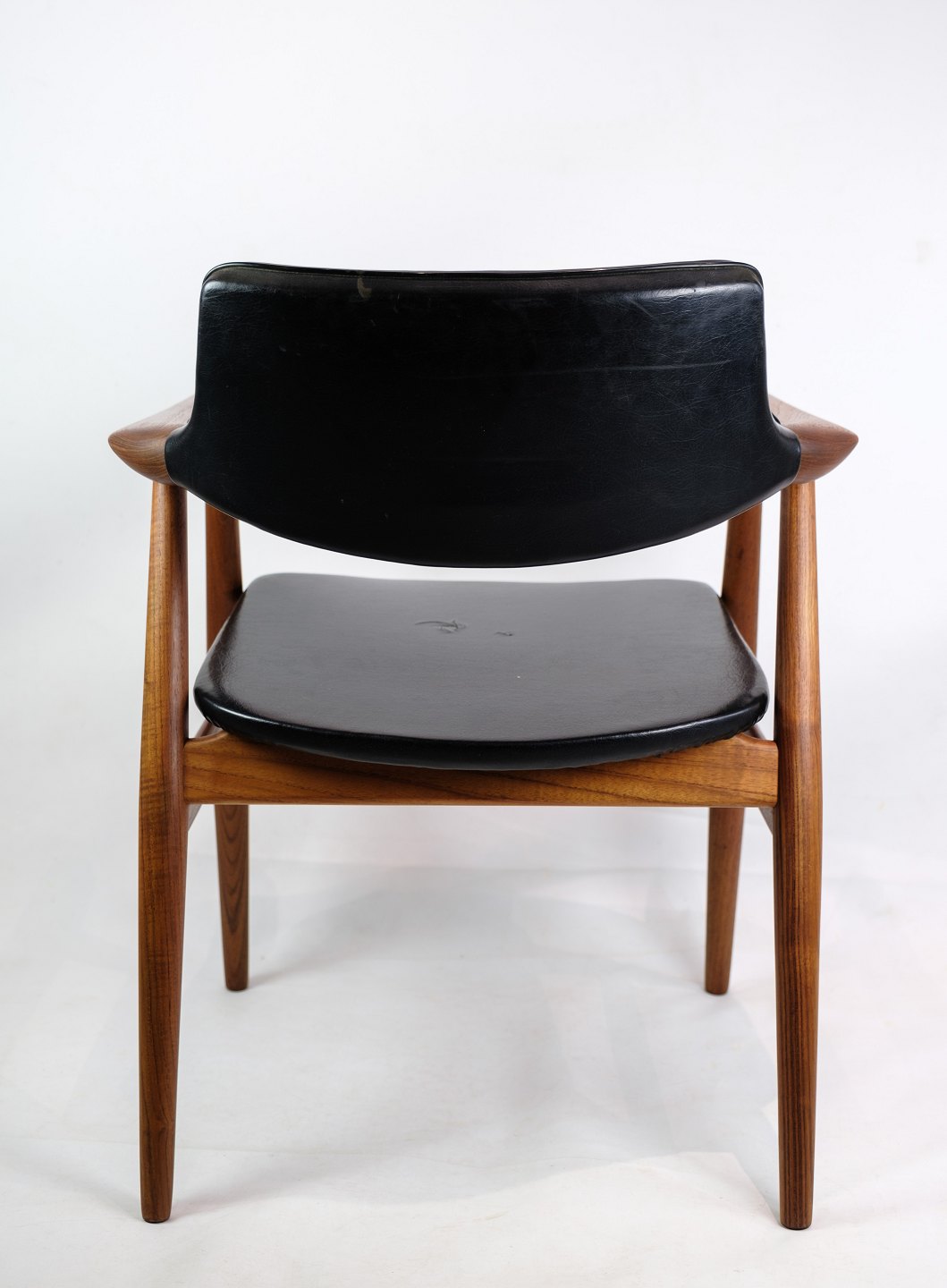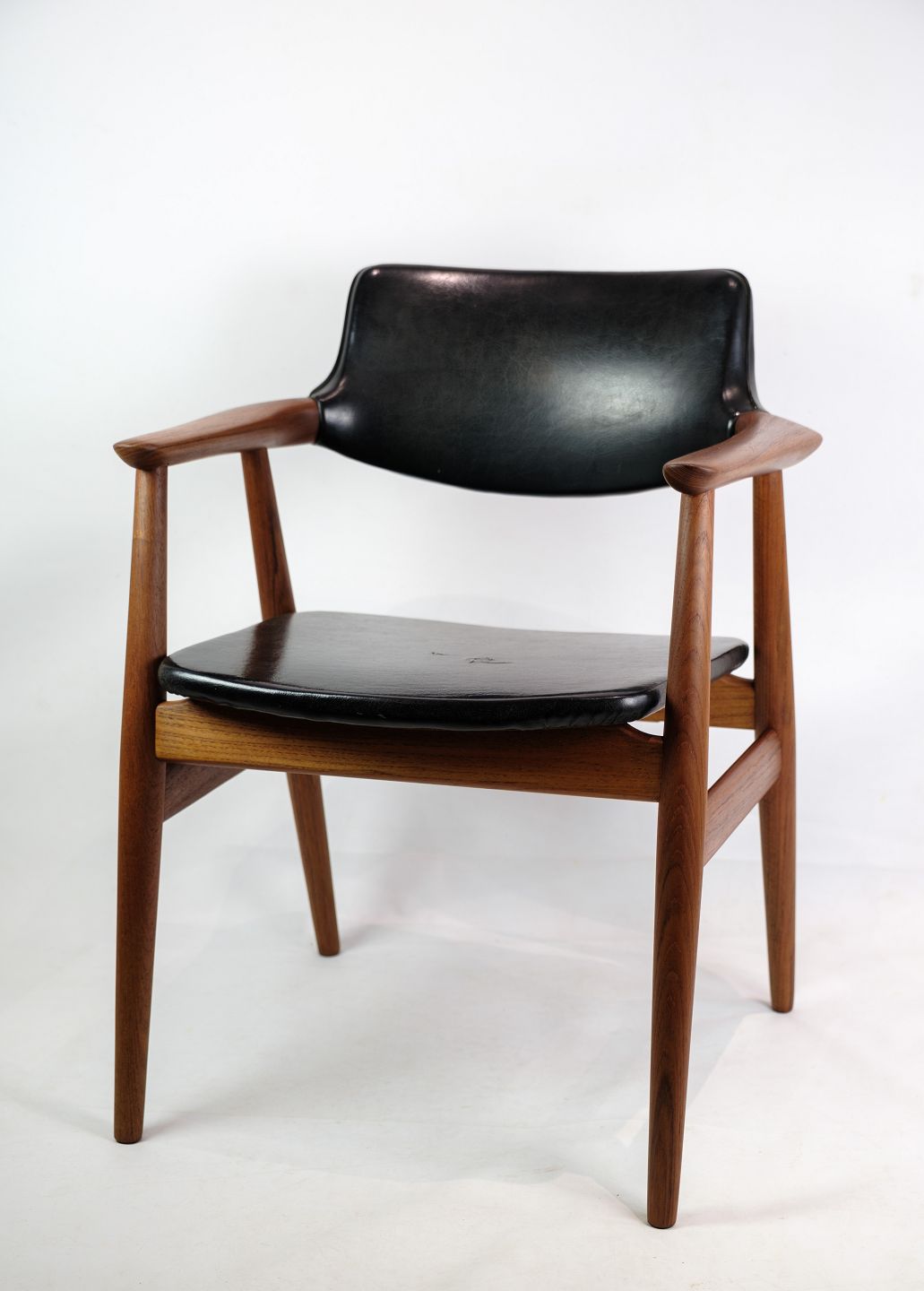 Armstol, model GM11 med stel af massiv teaktræ designet af Svend Åge Eriksen fremstillet af Glostrup Møbelfabrik i 1962.