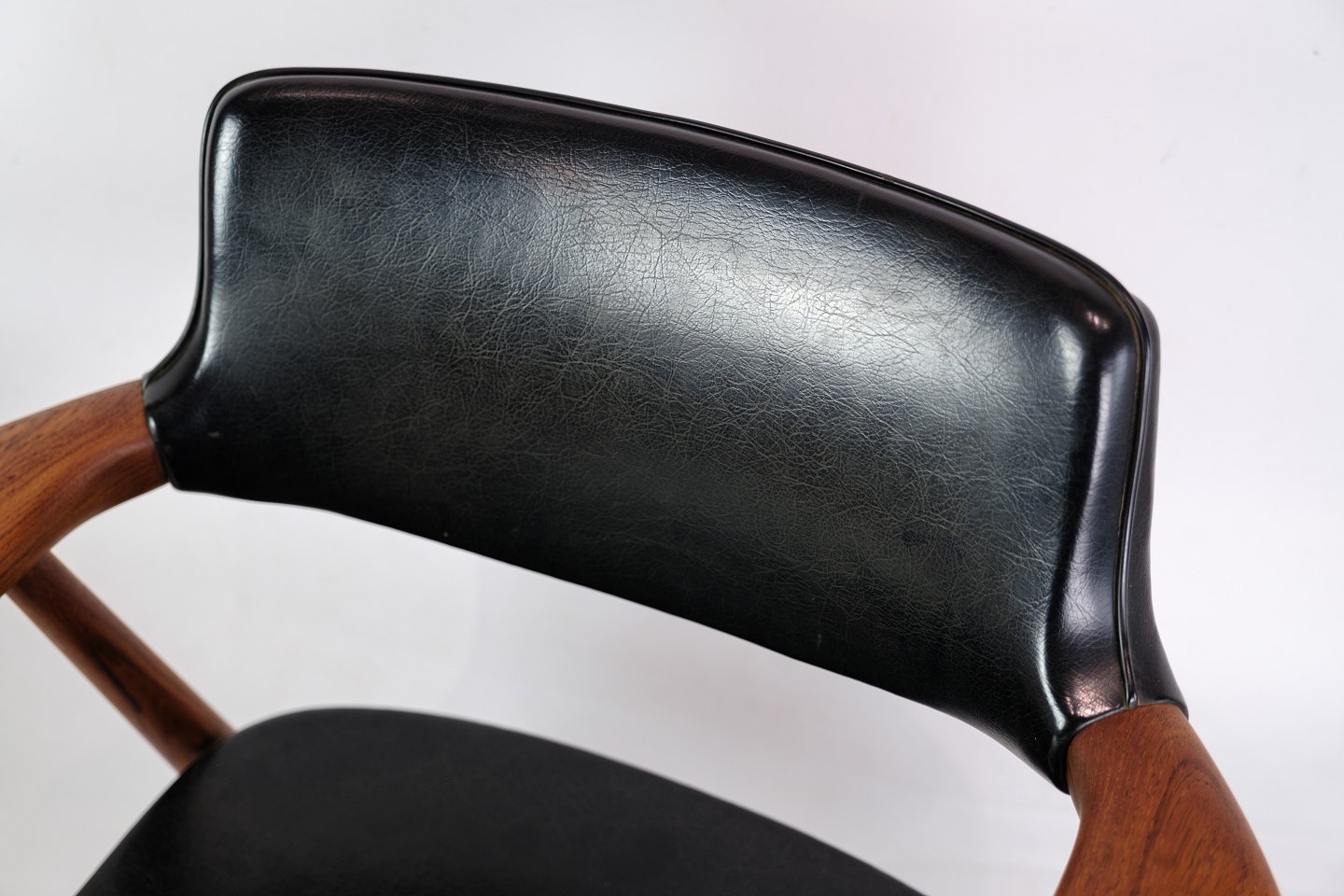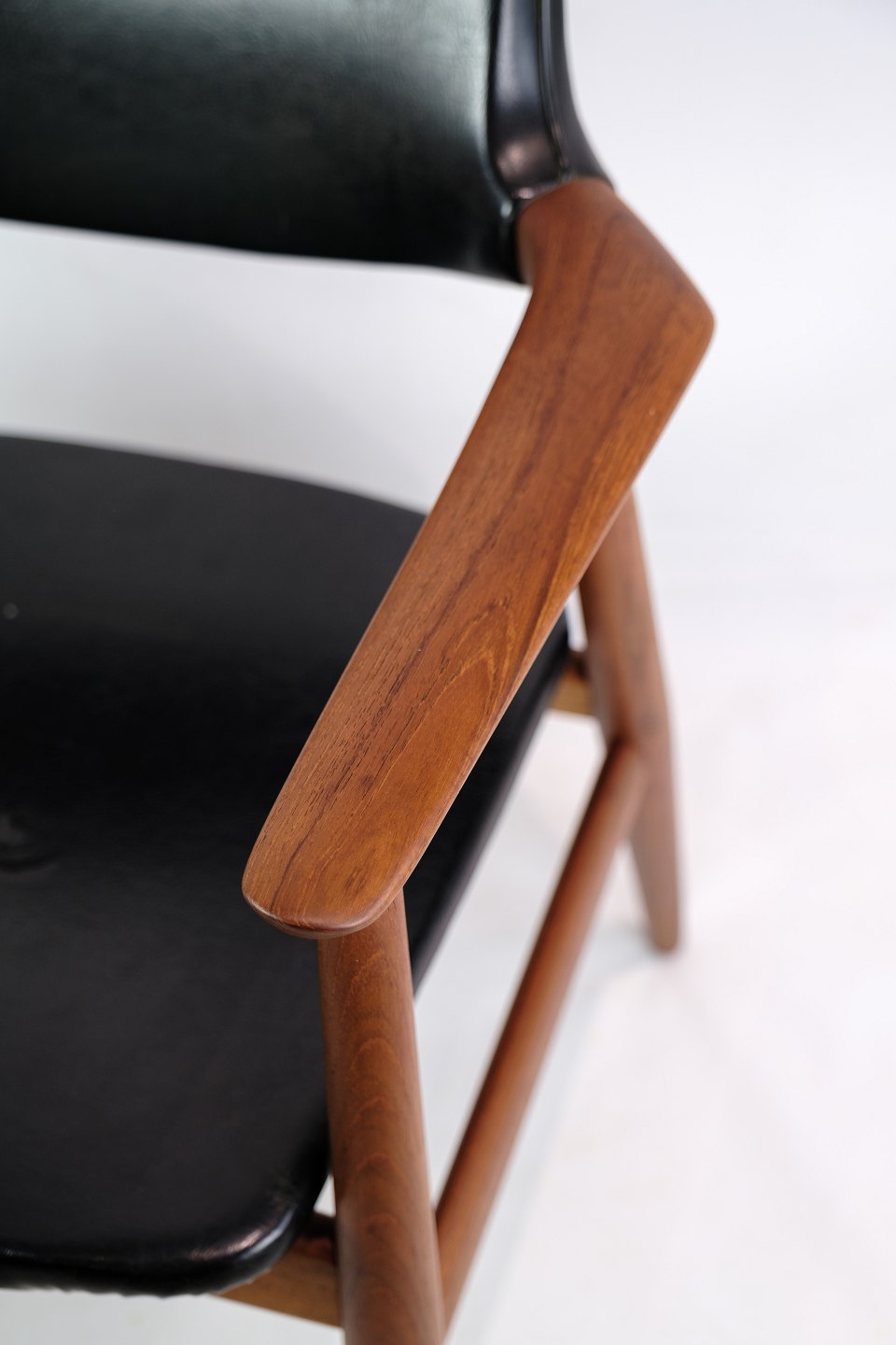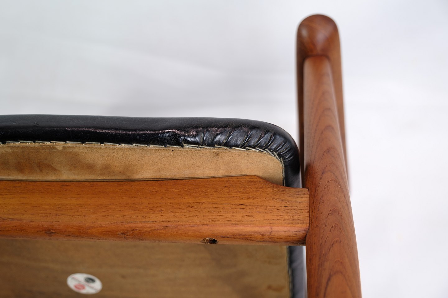 Armstol, model GM11 med stel af massiv teaktræ designet af Svend Åge Eriksen fremstillet af Glostrup Møbelfabrik i 1962.