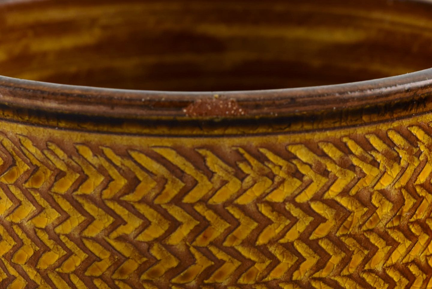 Nils Kähler (1906-1979) for Kähler. Vase i delvist glaseret stentøj. Smuk glasur i sennepsgule nuancer. 1960'erne.
