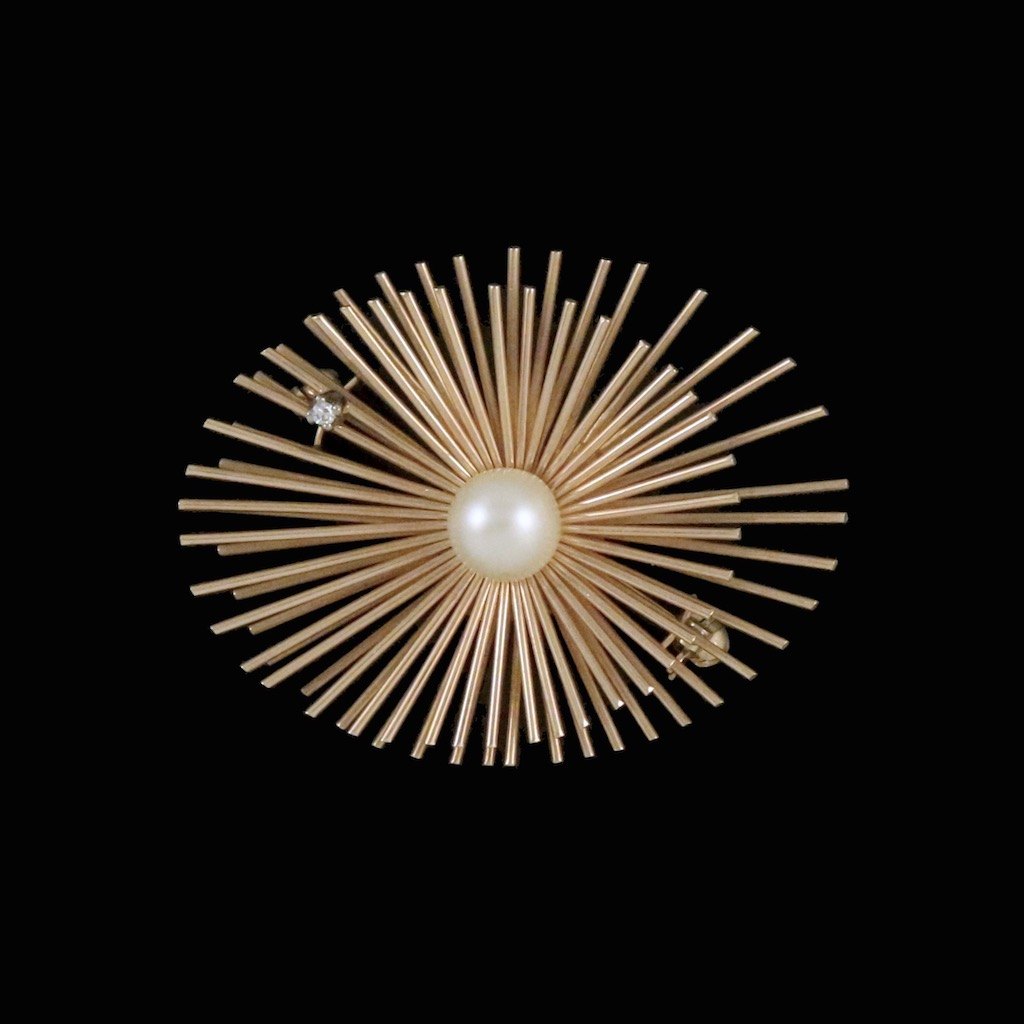 Viggo Wollny. Broche i 14k Guld med perle og brillant 0,03ct.