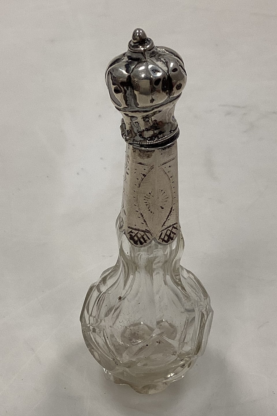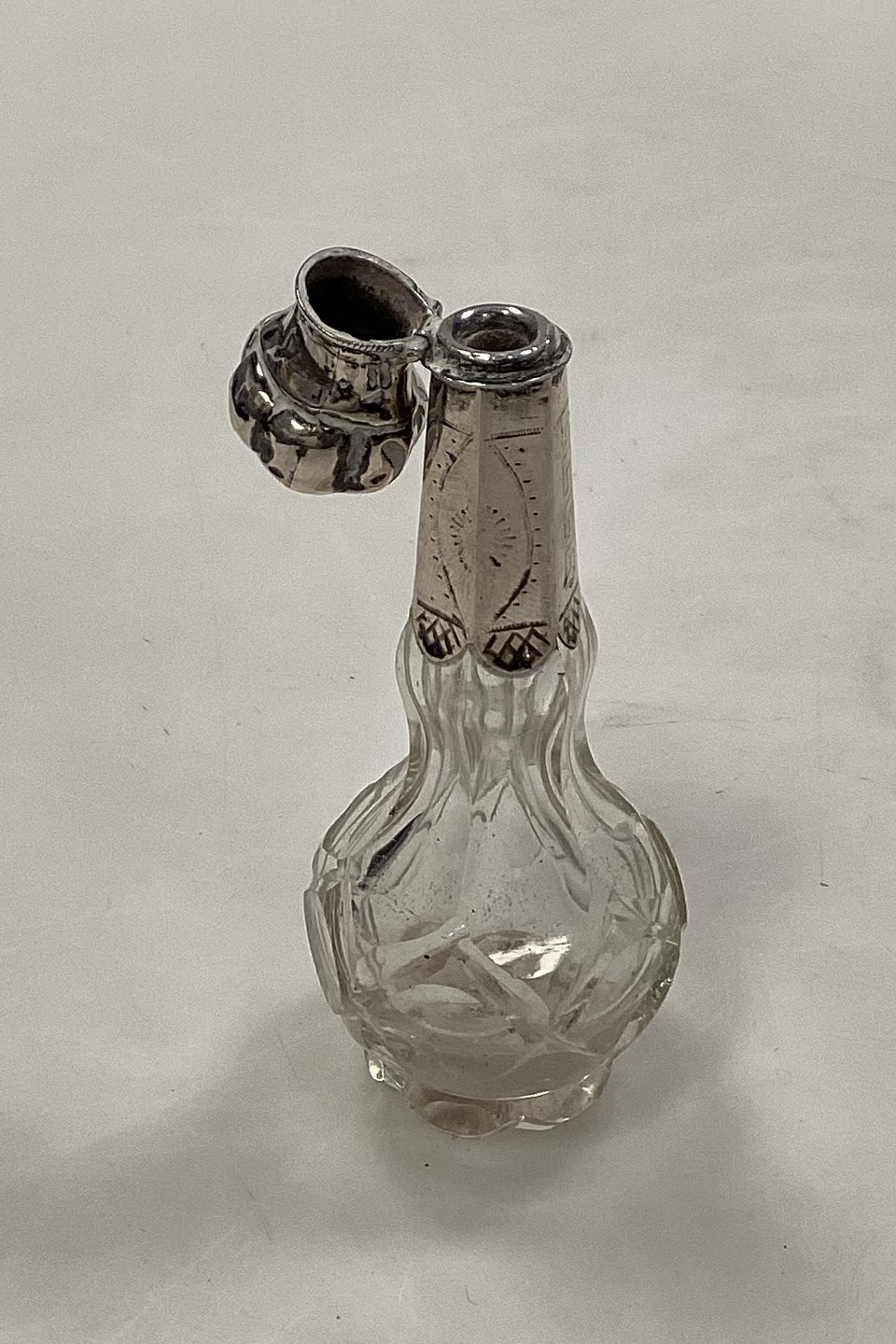 Parfumeflacon i glas med sølvmontering 19. årh.