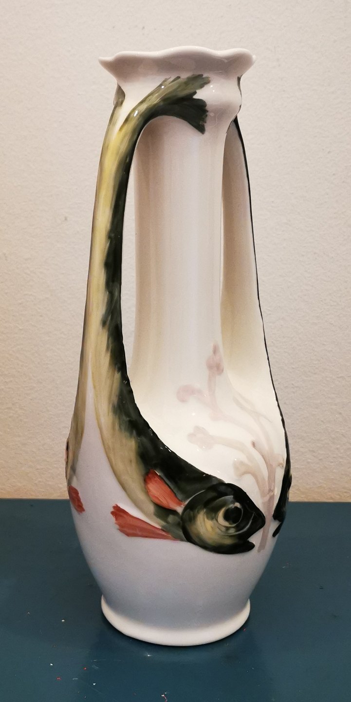 Art Nouveau Rörstrand vase med dekoration af fisk