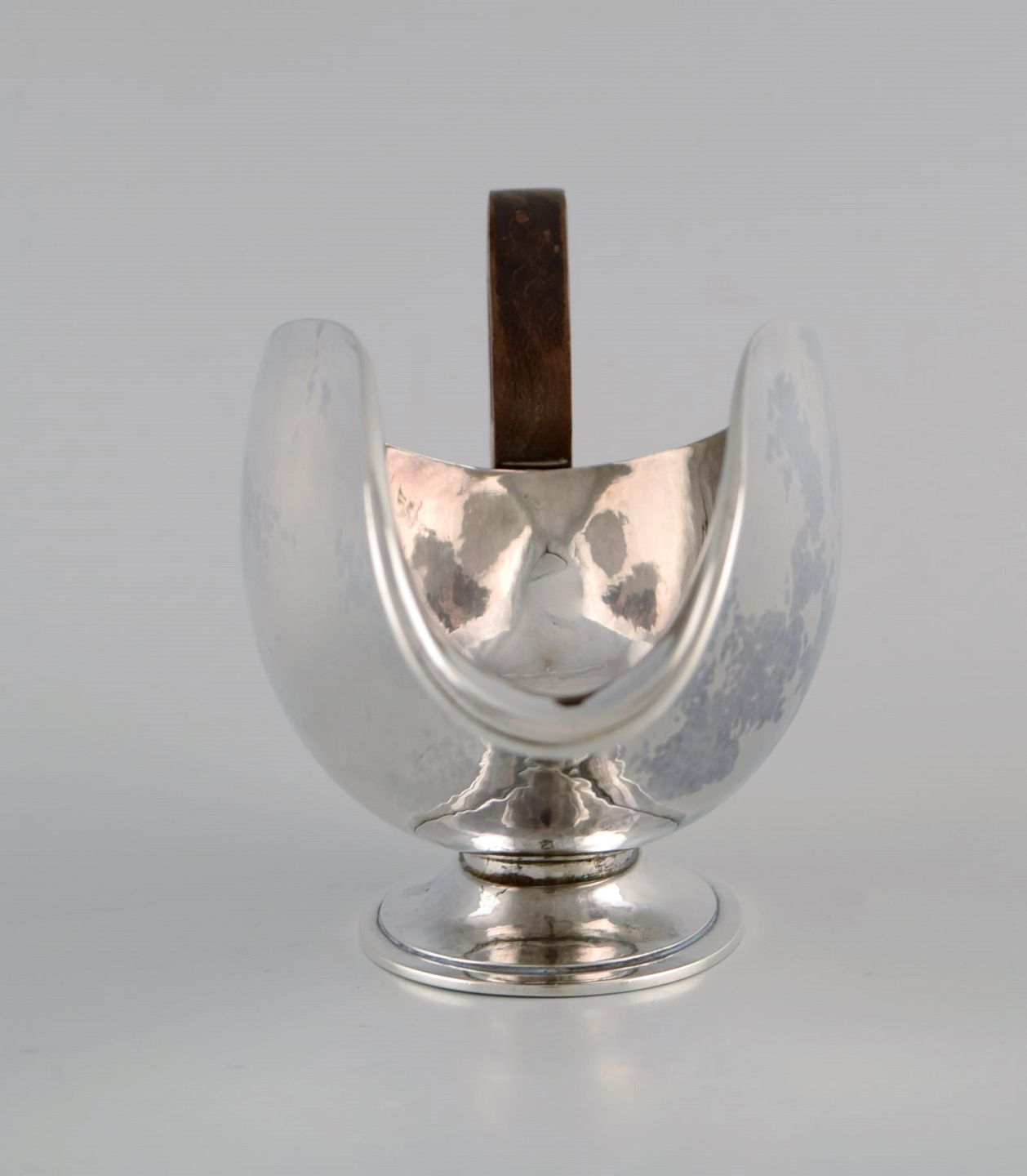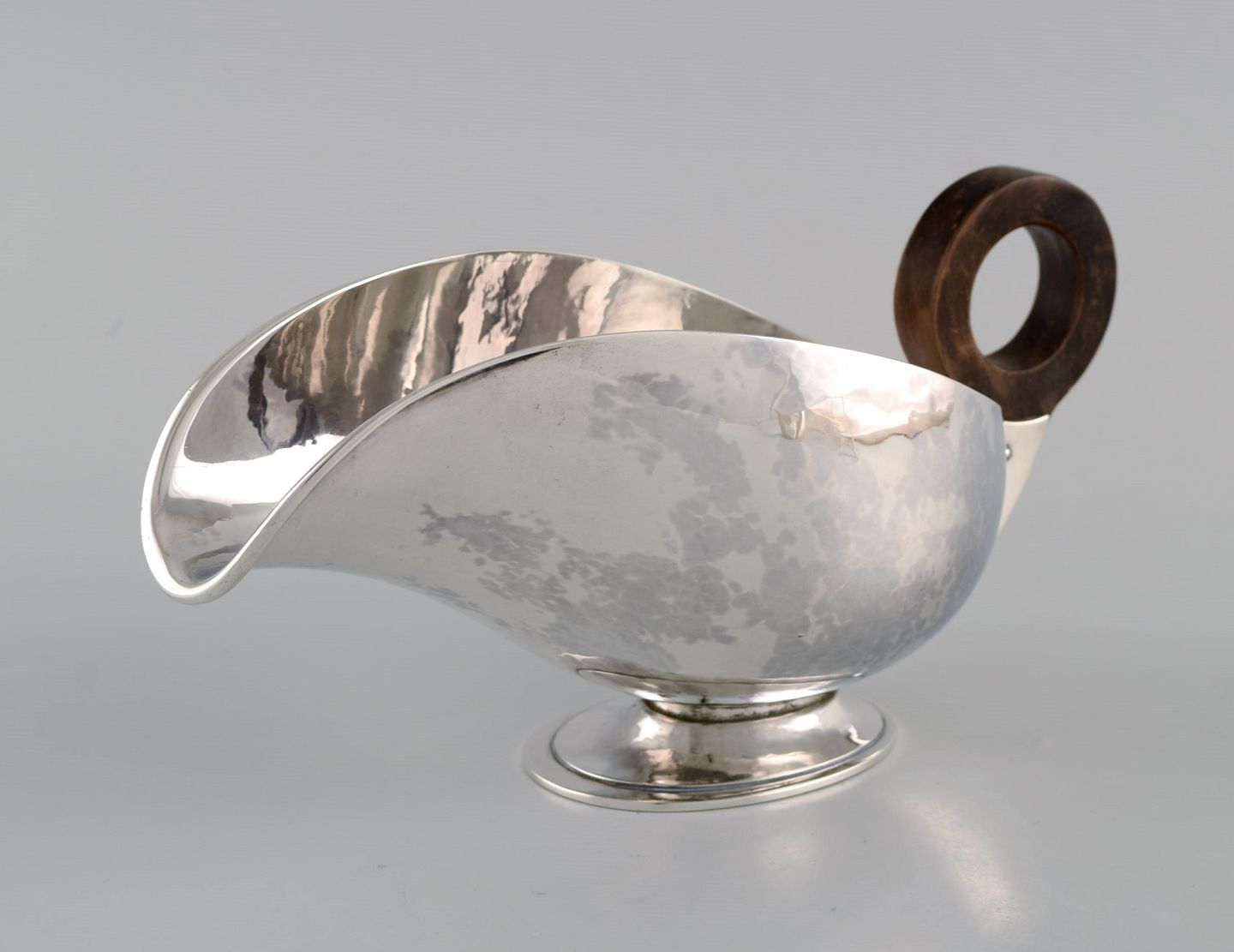 Hans Hansen (1884 - 1940), Danmark. Art deco / funkis sovsekande i sterlingsølv med hank i ibenholt. Dateret 1938.