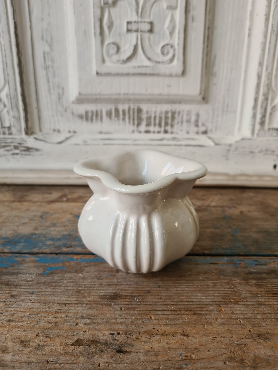 Michael Andersen lille riflet vase i cremefarvet glasur 7,5 cm.
