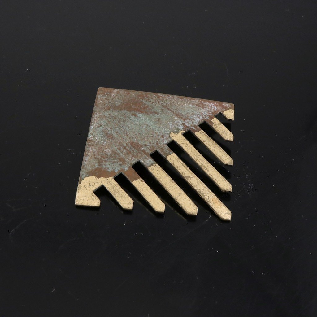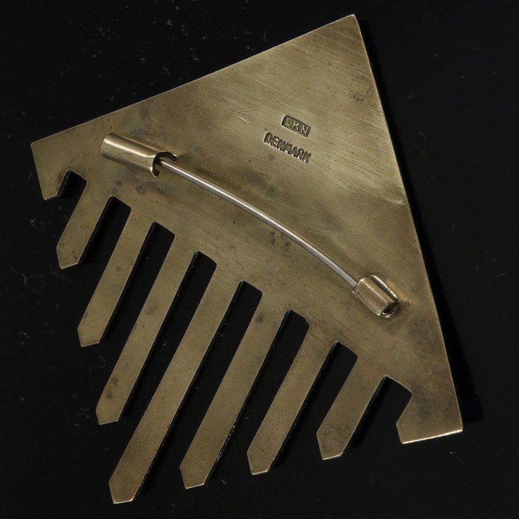 Leon Kastbjerg Nielsen. Broche i patineret messing med bladguld.