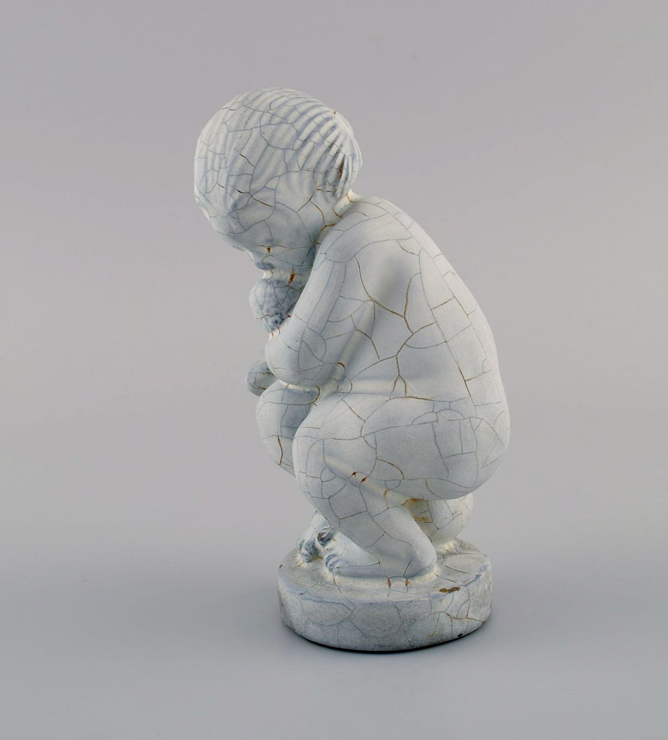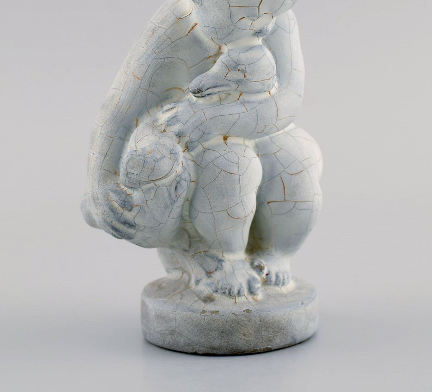 Kähler, HAK. Figur i glaseret stentøj. Leda og svanen. Smuk krakeleret glasur. 1930/40'erne.