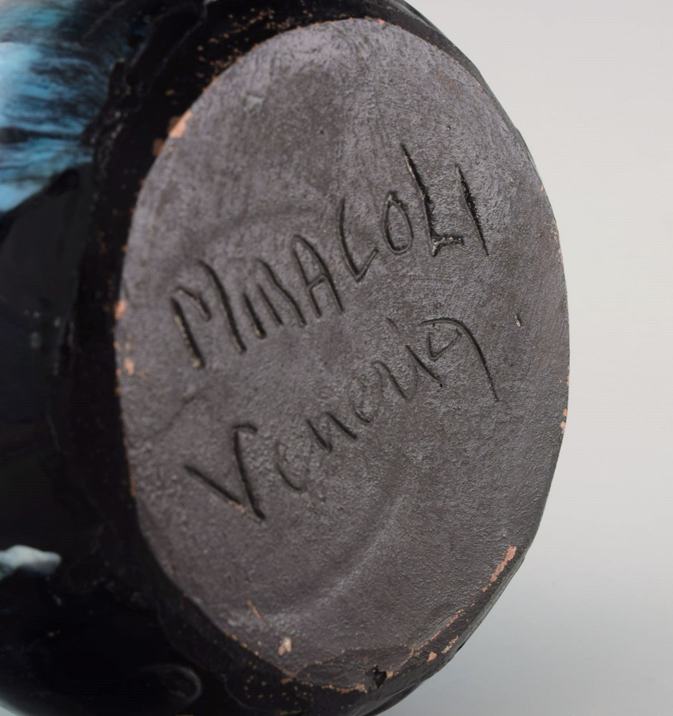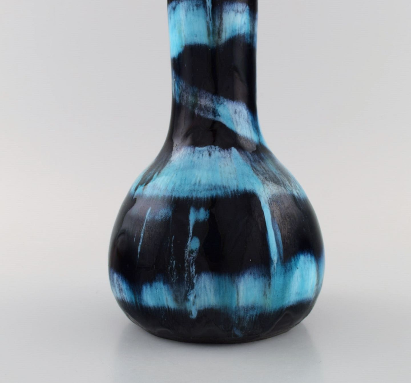 Otello Rosa for Miracoli, Venedig. Stor unika vase i glaseret stentøj. Smuk glasur i mørke- og lyseblå nuancer. Italiensk design, midt 1900-tallet.