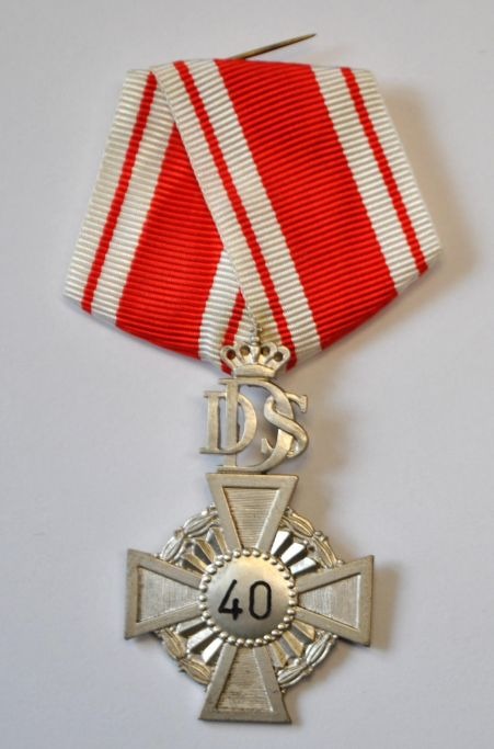 The Danish Scout Corps 40 year medal with ribbon, 20th century.