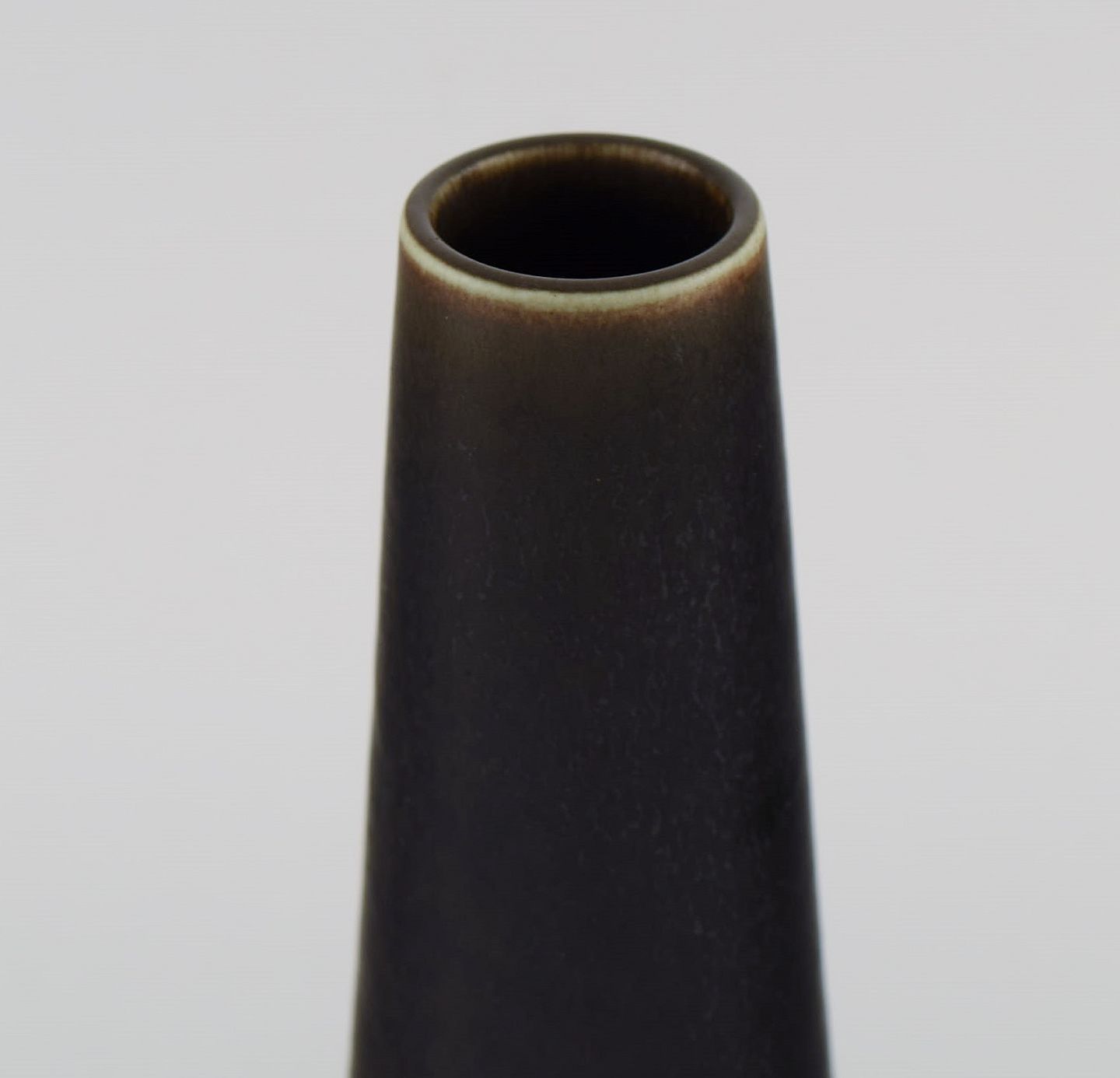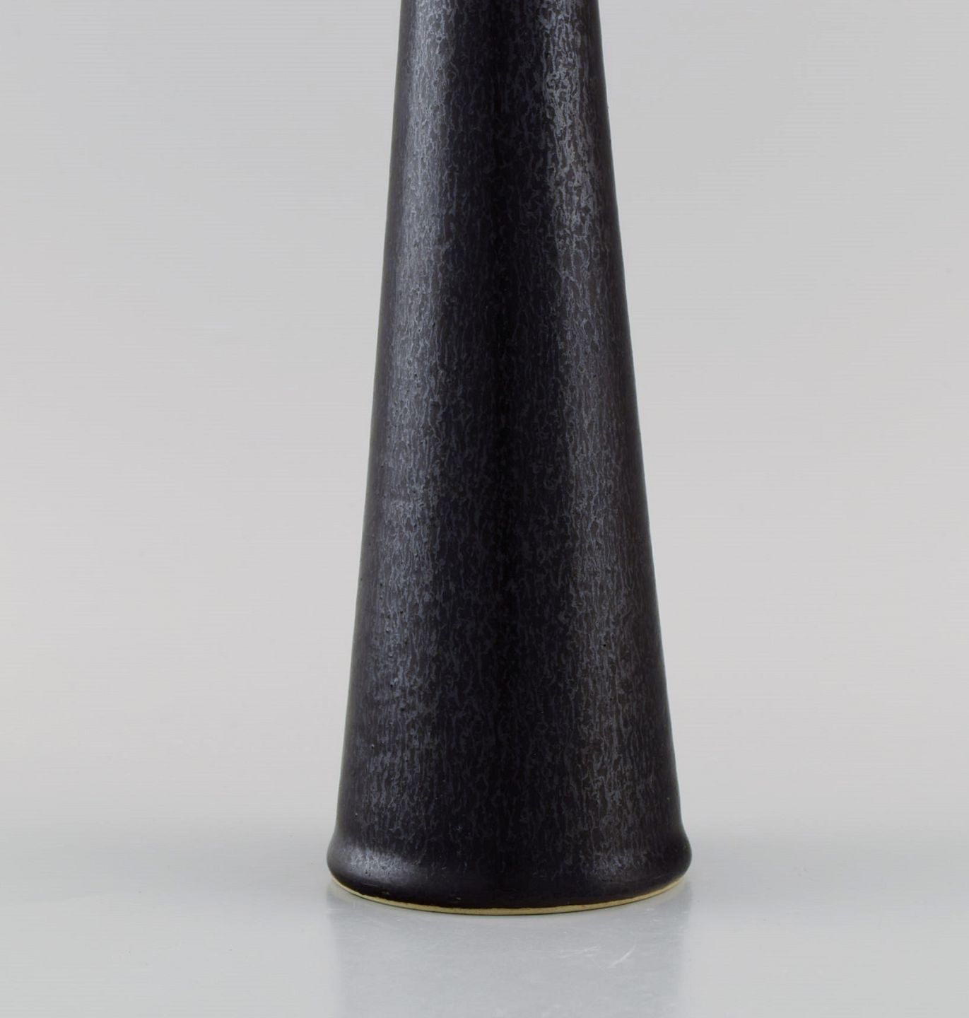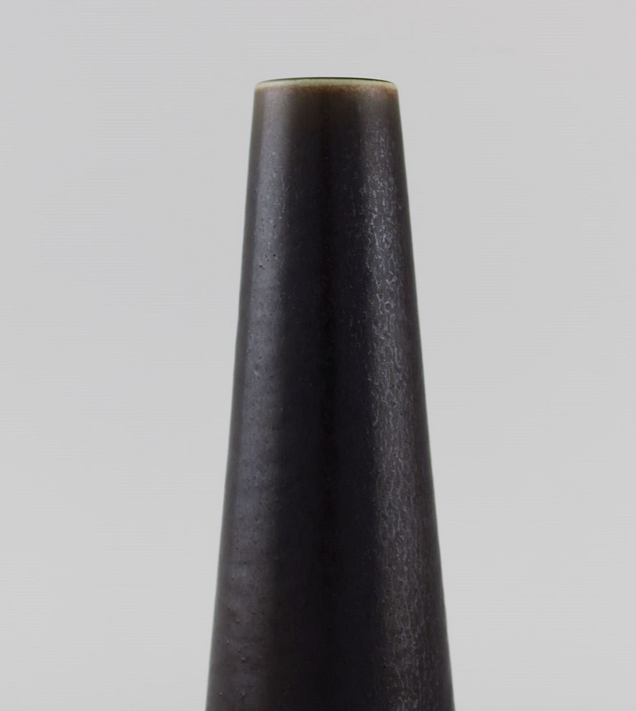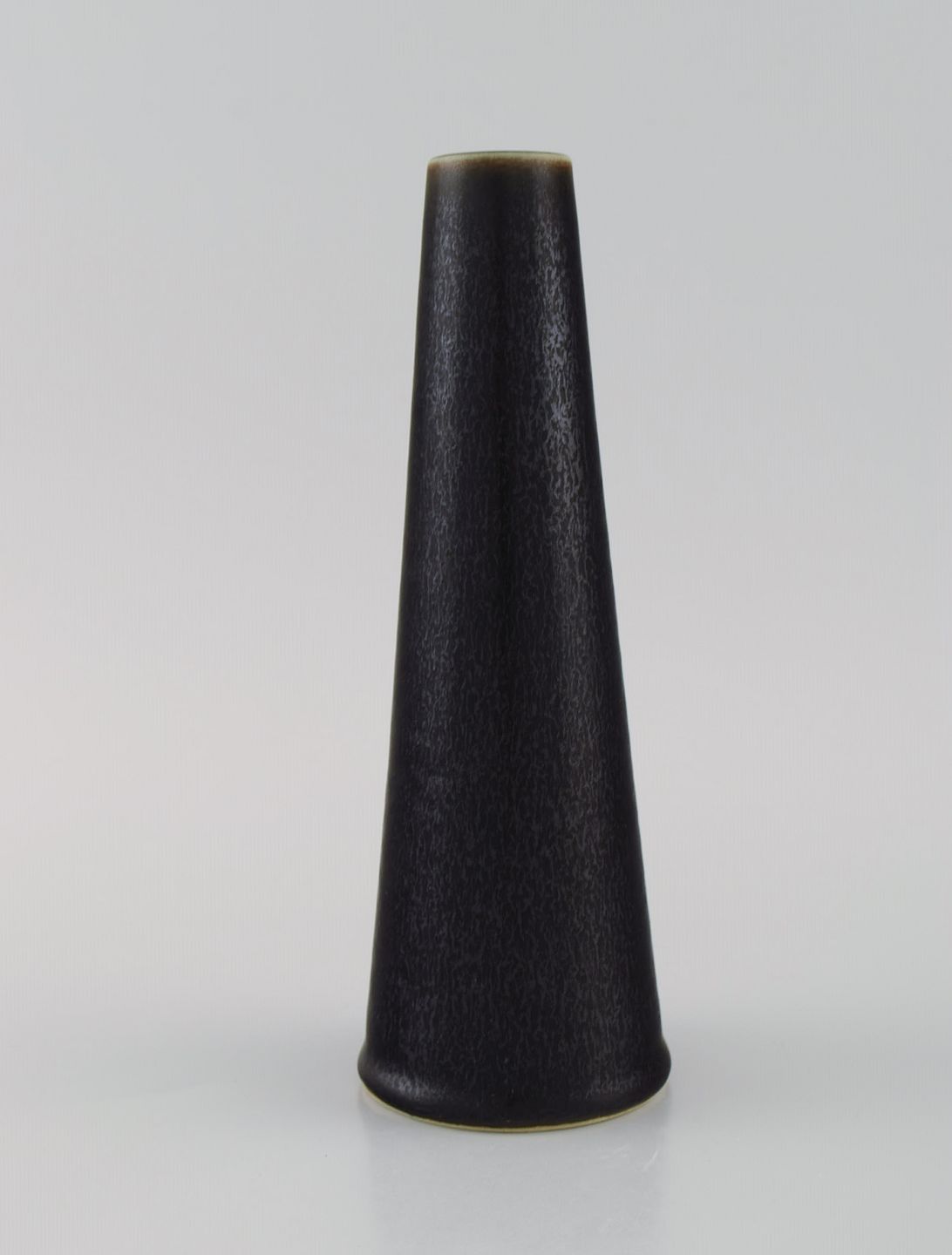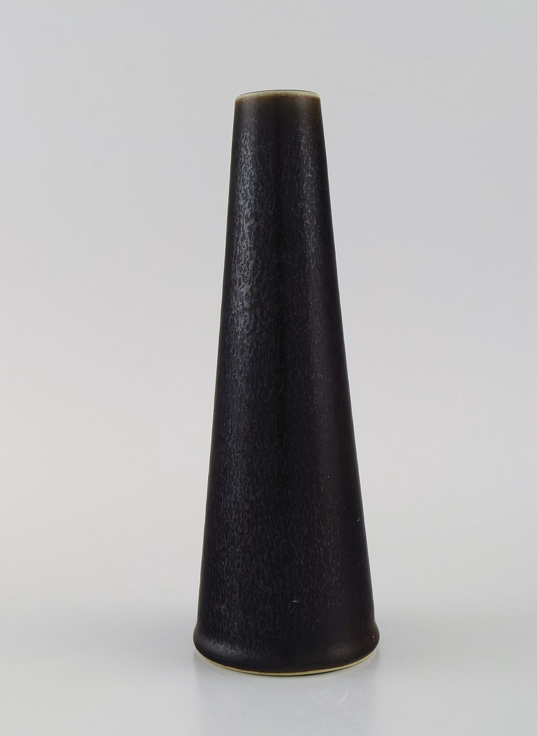 Carl Harry Stålhane (1920-1990) for Rörstrand. Kegleformet vase i glaseret keramik. Smuk spættet glasur i mørke og metalliske nuancer. Midt 1900-tallet.