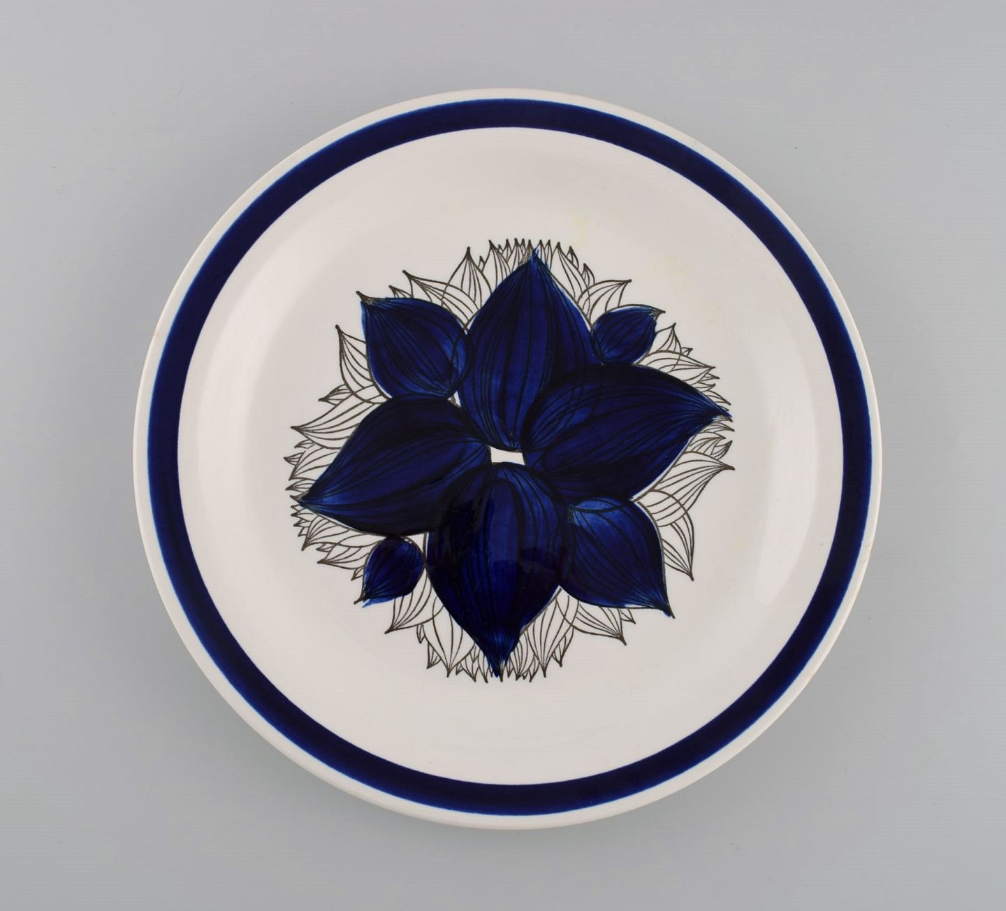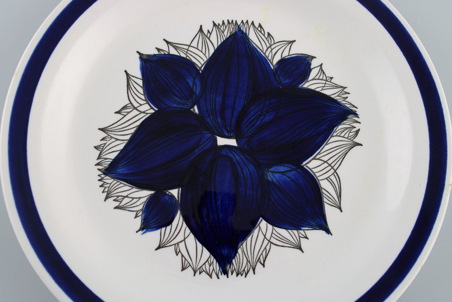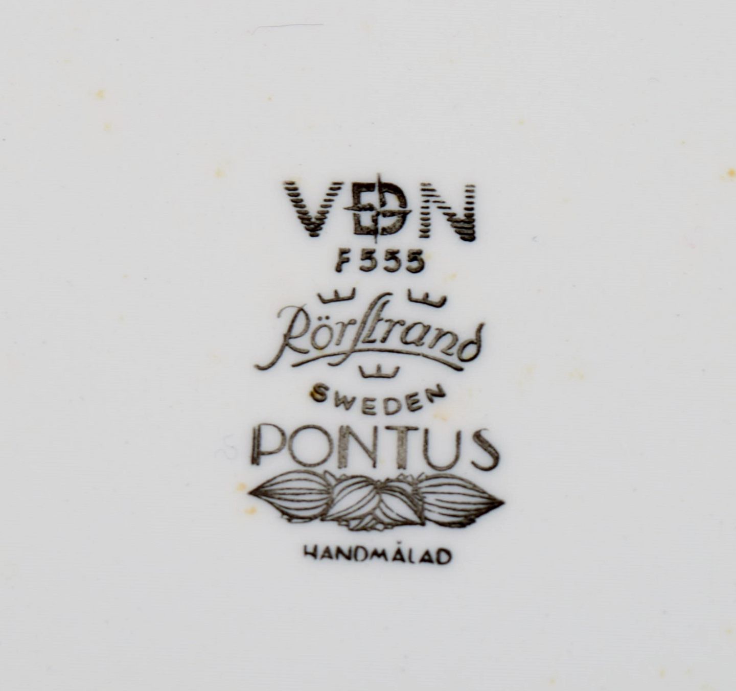 Olle Alberius for Rörstrand. Fire Pontus middagstallerkener i glaseret stentøj med håndmalet blomstermotiv. Svensk design, 1960'erne.