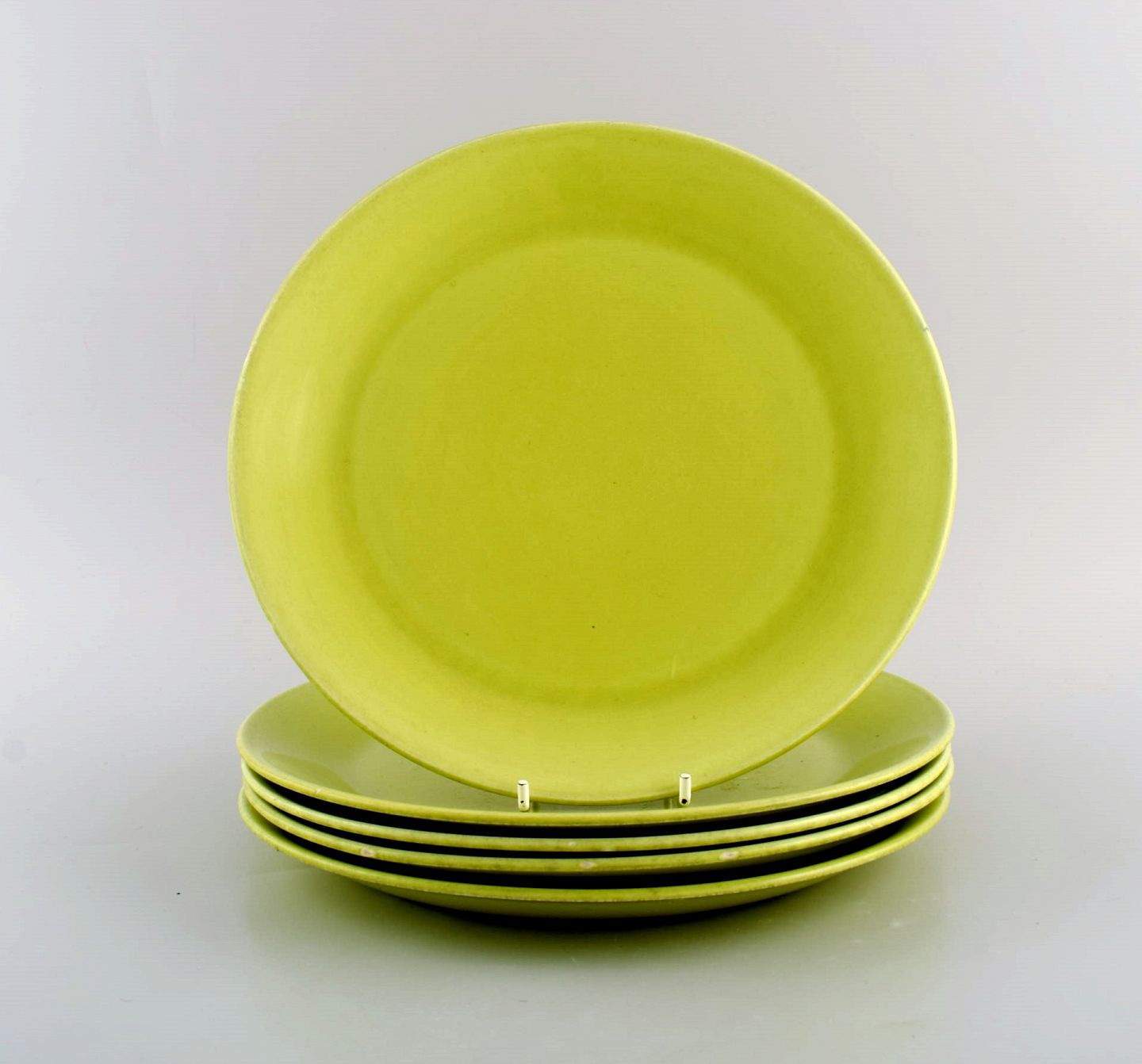 Stig Lindberg for Gustavsberg. Fem Spisa-Legum middagstallerkener i glaseret porcelæn. 1960'erne.
