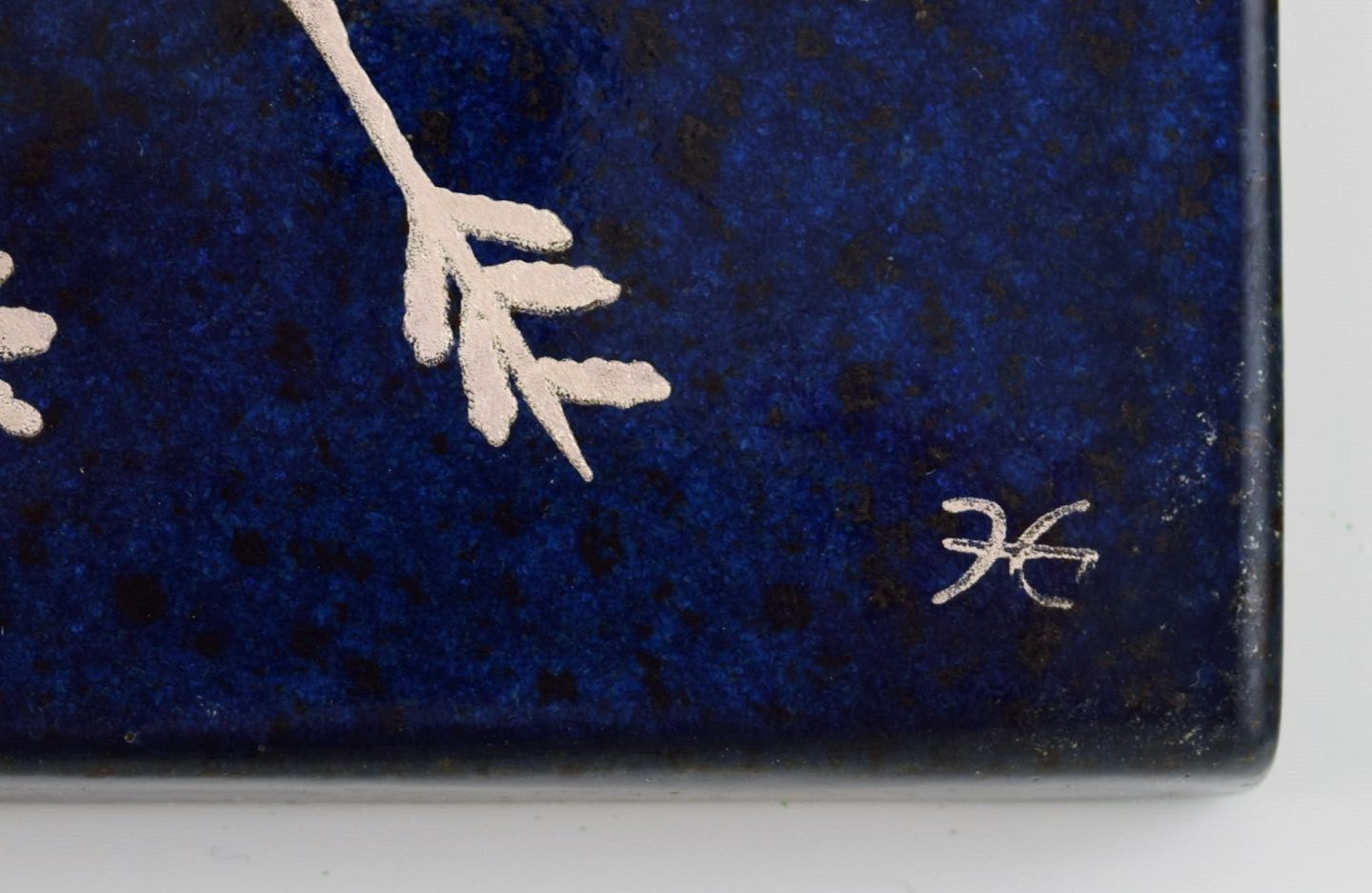 Heinz Erret (1920-2003) for Gustavsberg. Vægplakette i glaseret keramik med sølvindlæg i form af lyng. 1970'erne.