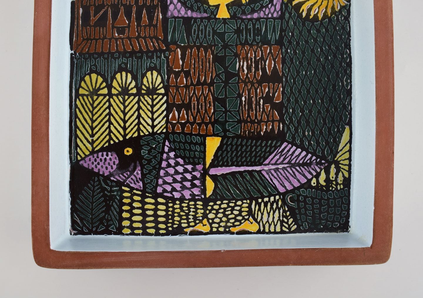 Stig Lindberg (1916-1982) for Gustavsberg. Karneval fad / skål i håndmalet stentøj. Svensk design, midt 1900-tallet.