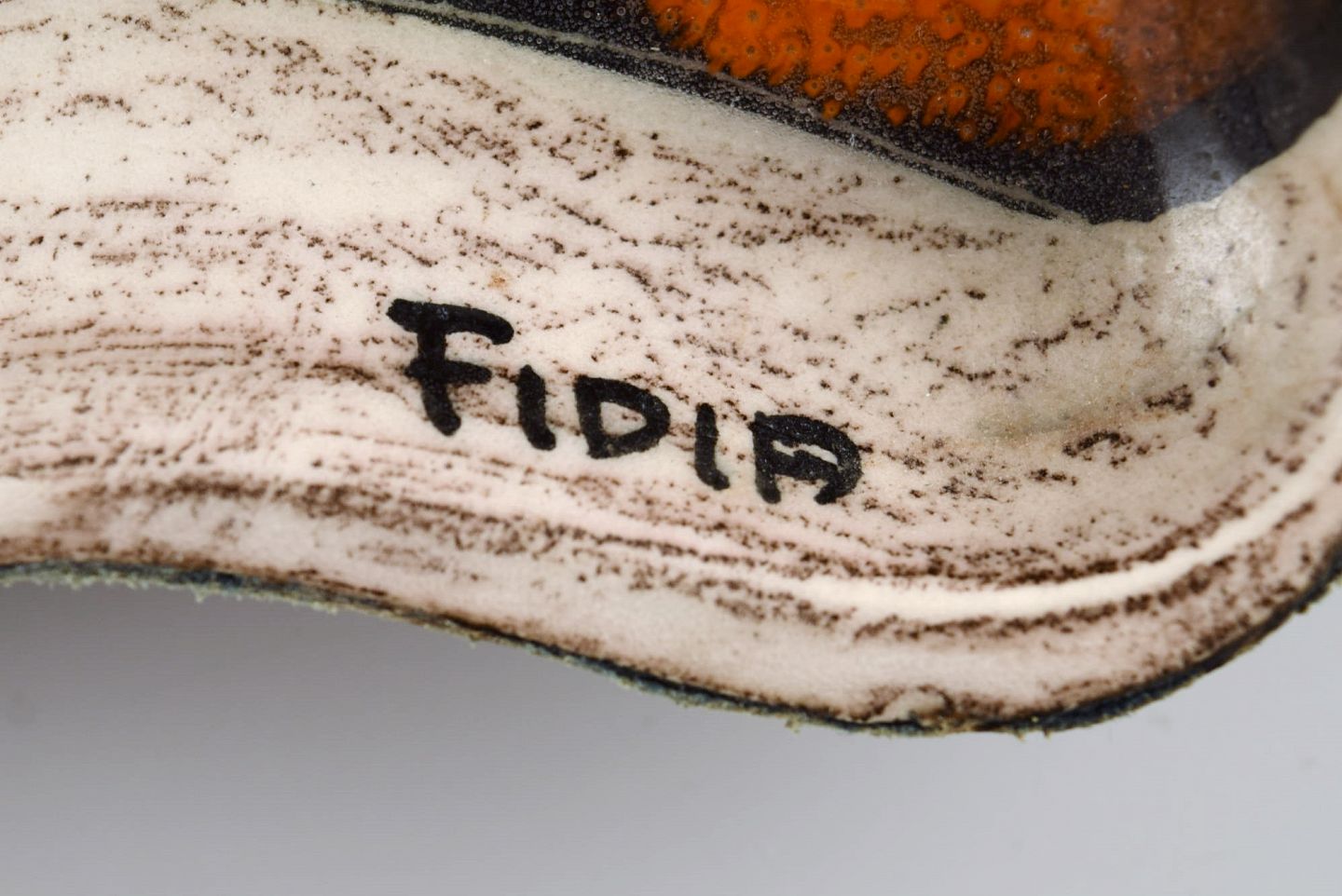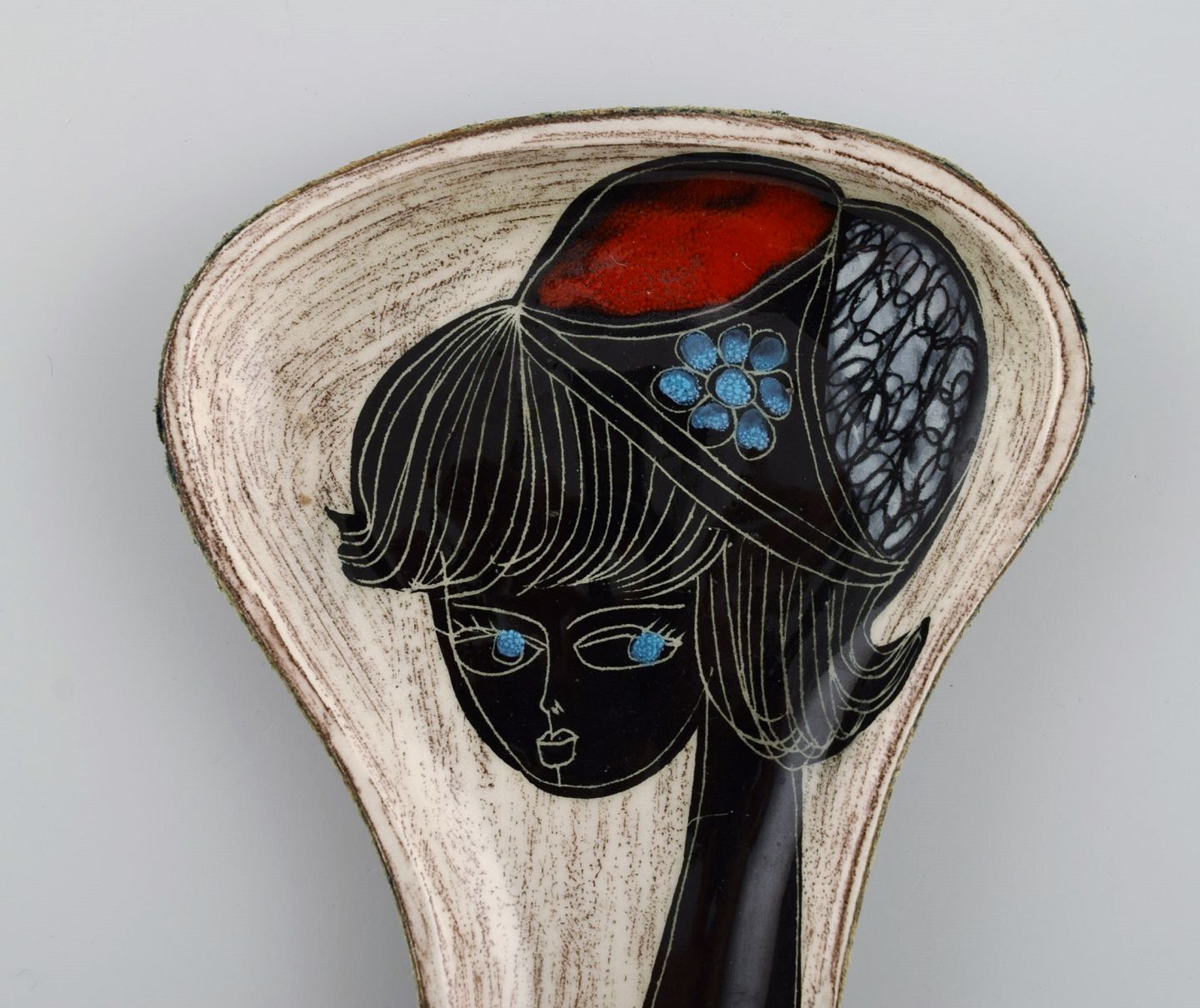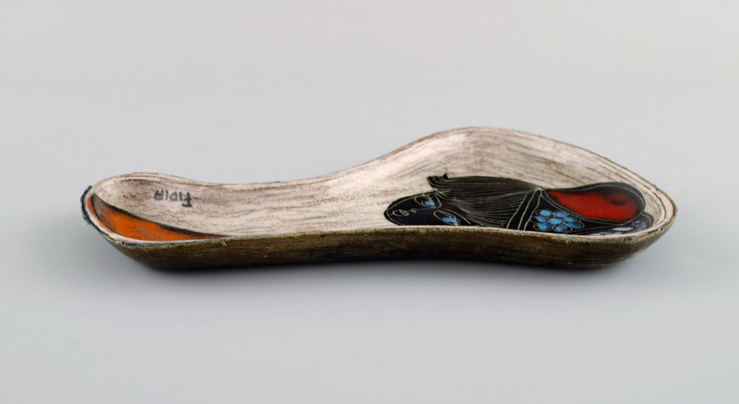 Fidia, Italy. Dish in leather-covered ceramics with hand-painted female portrait. 1960s.