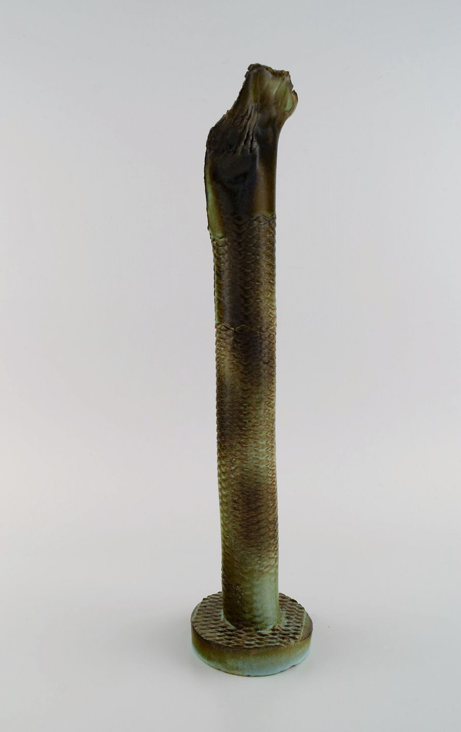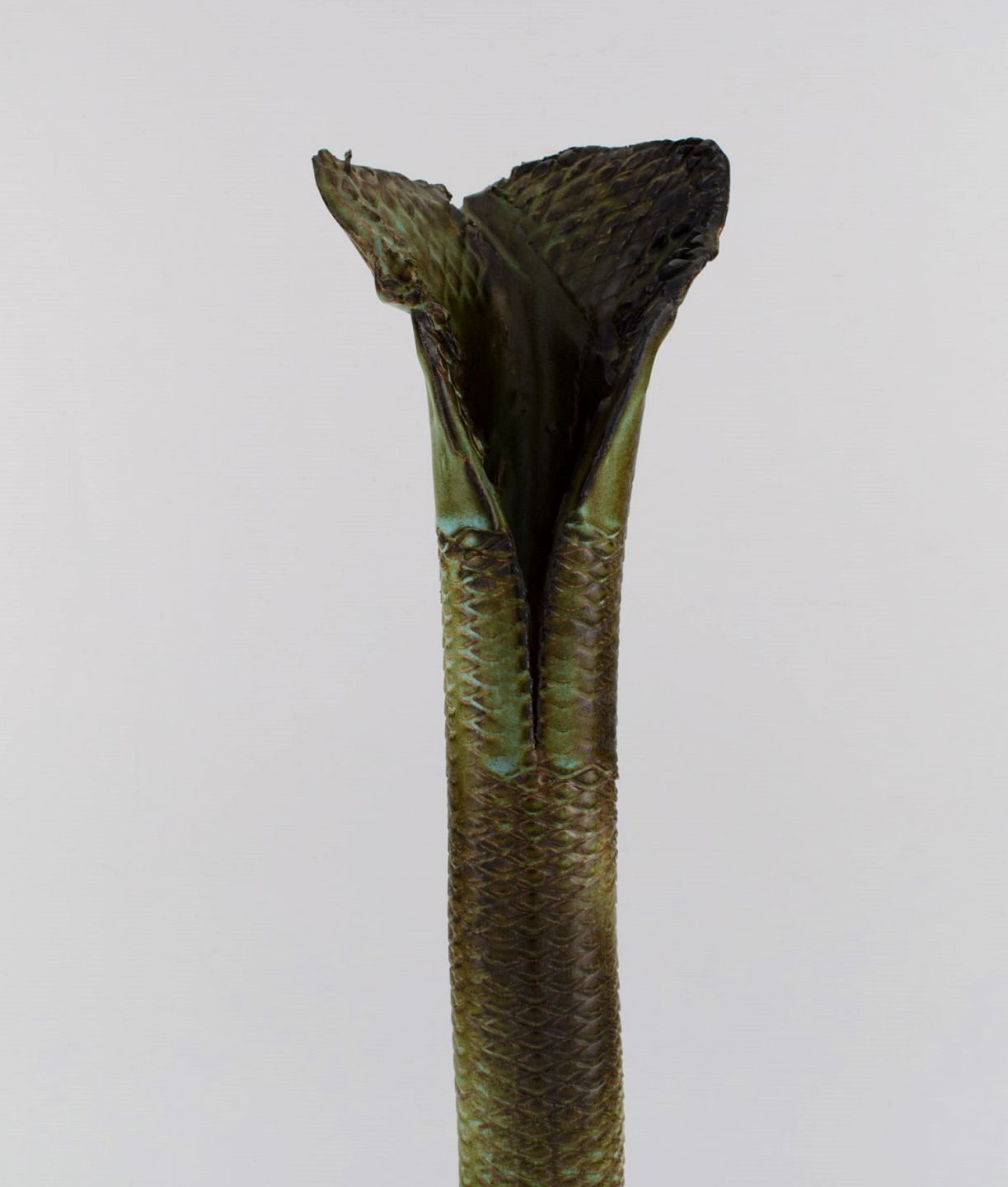 Francis Milici (f. 1952) for Vallauris. Organisk formet unika vase i glaseret keramik. Smuk glasur i mørke grønne nuancer. 1980'erne.