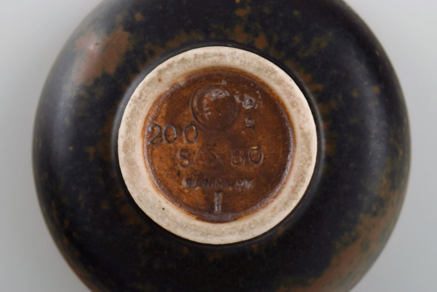 Saxbo miniature skål i glaseret keramik. Smuk glasur i brune nuancer. Midt 1900-tallet.